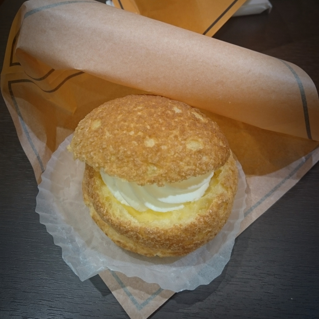 開拓おかきを購入しましたが、試食ができるので余計に迷います。また、6席ですがこちらで食べることができるスペースもあります。シュークリームを食べましたが、5時の段階で売り切れているものもありました。セルフのコーヒーがありました。