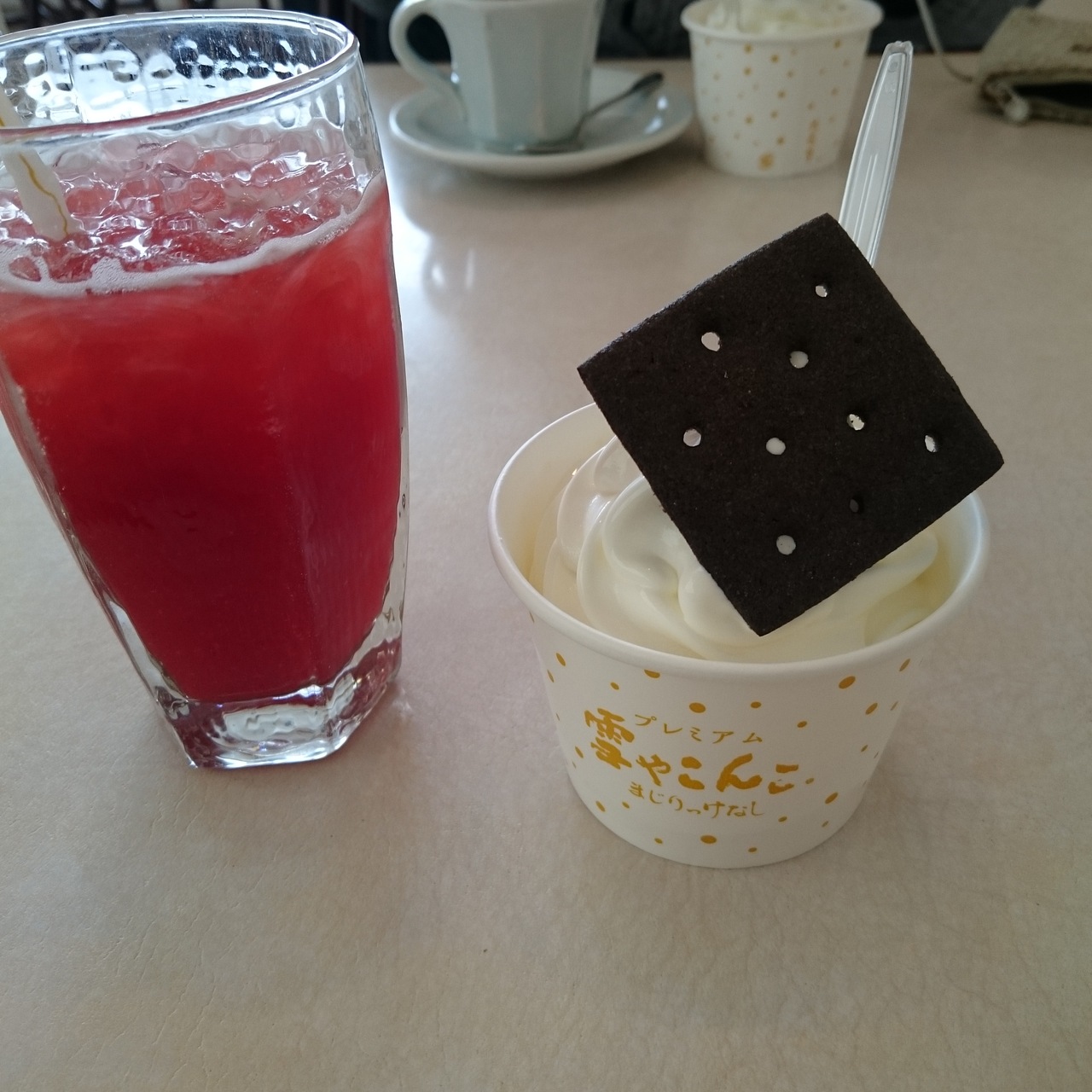 六花亭のカフェということで訪問しました。1階はお土産、カフェは2階です。今回は雪やこんこプレミアムまじりっけなしとイチゴジュースを飲みました。甘味のイメージが強いですが、ピザなどもあり、食事を楽しんでいる方多くいました。