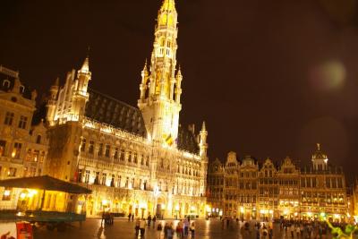 • グランプラスで開かれている花市。広場一面に・・・、というわけではありま...