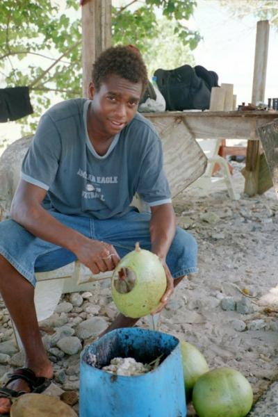 ココナツを削っていた若者は、「インターネットに僕の写真を載せてくれよ」...