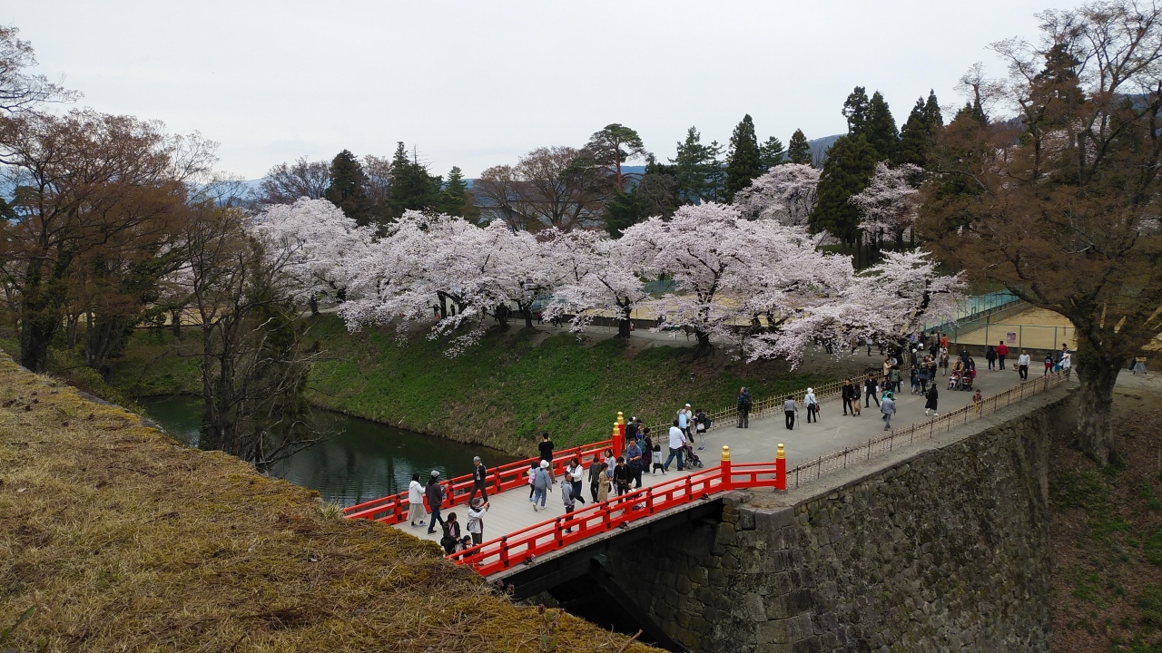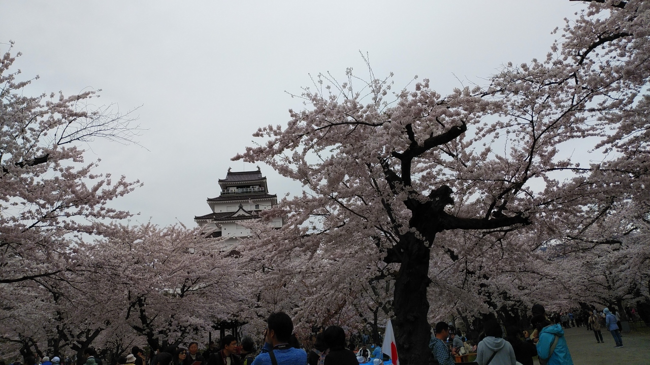 今回の東北旅行はさくらを見るのも目的の一つですが、鶴ヶ城の桜祭りは4月5日~5月6日までと長く期待していました。私達は4月下旬の初めに訪れたのですが、満開で駐車場に入るのも長い順番で30分依頼待って入ると、沢山の人がいてあちこちで宴会も始まっていました。公園内の桜も見事でしたが、鶴ヶ城の桜も綺麗で訪れた甲斐があり満足しました。私の友達も東北の桜を見に行った人も多いのですが、なかなか満開の桜は見る事が出来ないと言っていたのでラッキーで良かったです。