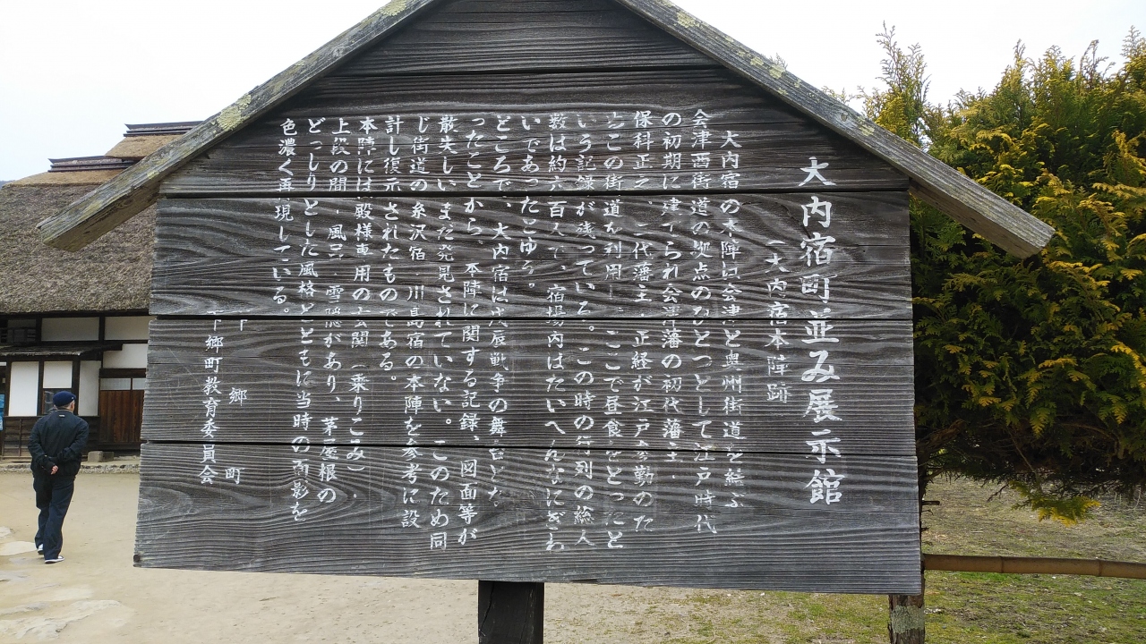 大内宿の本陣は江戸時代初期に建てられたのですが、戊辰戦争によって大内宿の本陣の記録、図面が紛失して発見されなかったので、昭和59年に糸沢宿、川島宿の本陣を参考にして復元され大内宿町並み展示館として展示しているそうです。 当時をしのばせる部屋と昔からの風習を伝える写真や生活用具などが展示されていて、当時の風習を知ることができます。大内宿で入館料が必要なのはここだけでした。