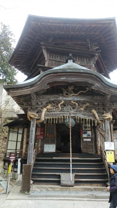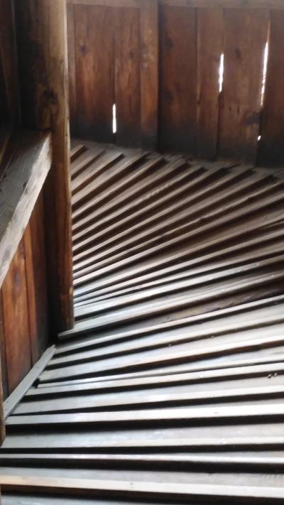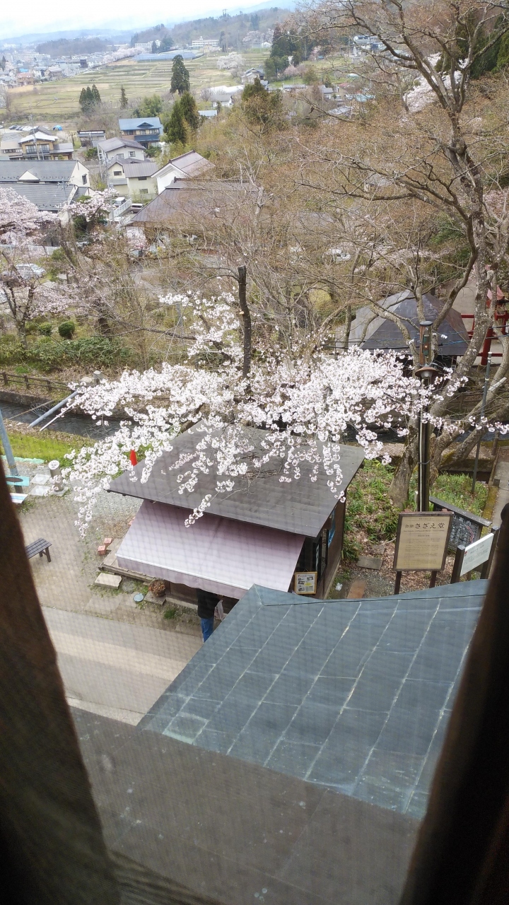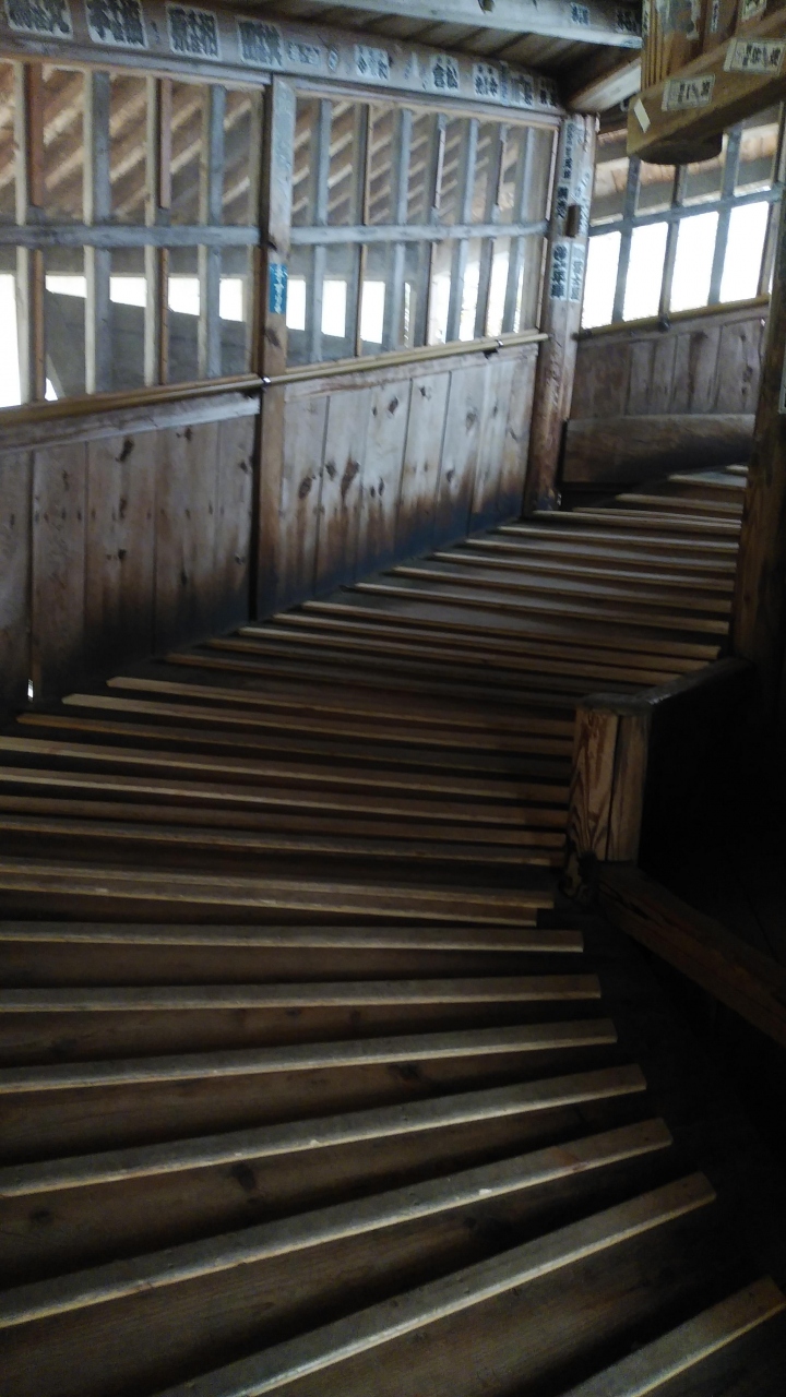 正式名称は「円通三匝堂(えんつうさんそうどう)」と言うそうで、郁堂禅師が二重紙縒の夢を見て発想を得たという説がある奇妙な二重らせん構造と、一方ではレオナルド・ダ・ヴィンチが設計した、フランスのシャンボール城内部にある二重螺旋階段、この発想が蘭書に載って会津まで伝わったのではないかという説があるそうです。二重螺旋構造の堂内には西国三十三観音像が安置されていて、一度に全ての観音像にお参りができます。入口から入ると上りと下りが全く別の通路になっている一方通行の構造となっていて、降りてくる人とすれ違うことなく堂内を参拝できるという珍しい建物でした。上層階の堂内は暗いでいが頂上からの景色は結構高さがありました。