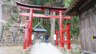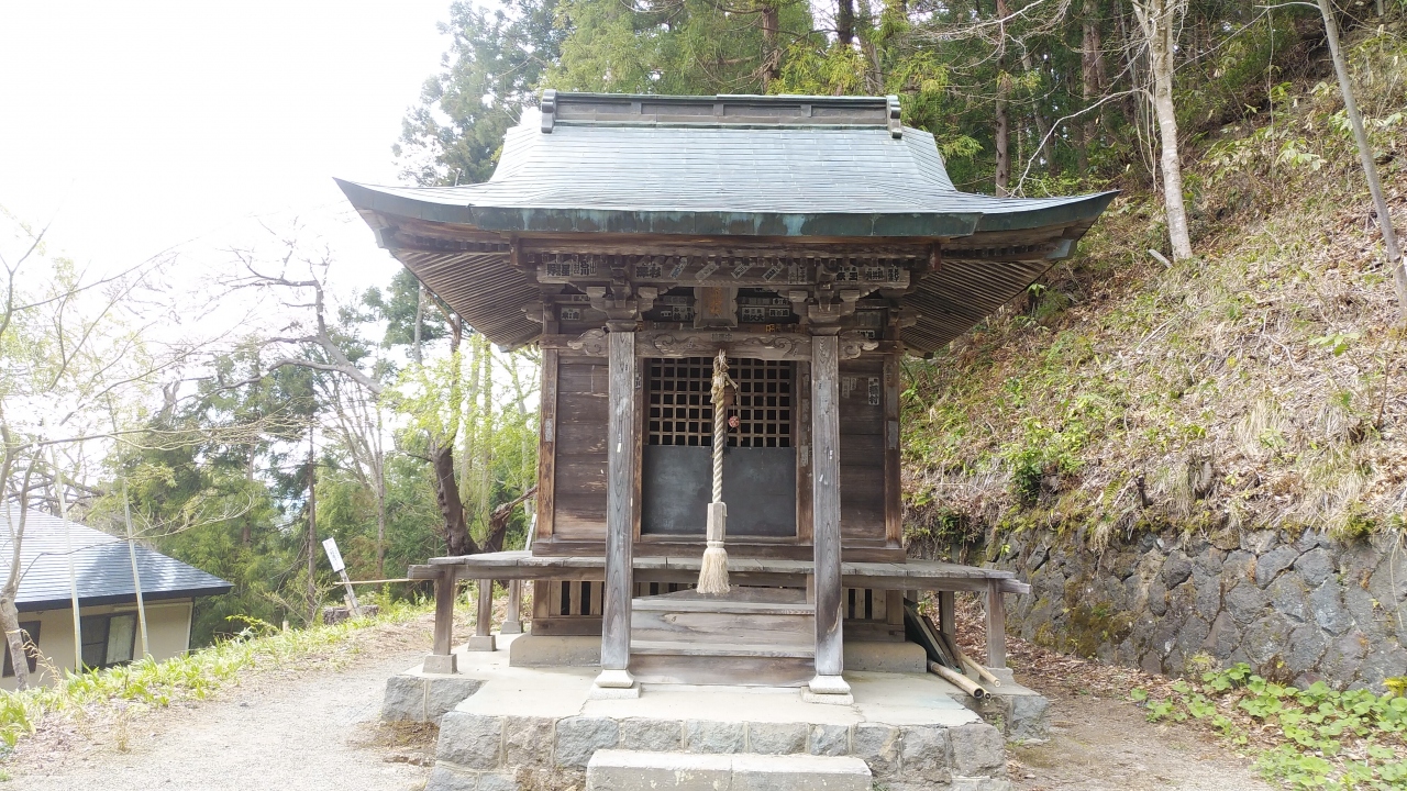 飯盛山の頂上に白虎隊19士の墓からの帰り道にさざえ堂がありますが、その近くに戸ノ口堰洞穴の傍にある神社です。詳細は不明らしく堰水を守る守護神として勧請されたと思われるそうで、歴史的には比較的に浅く、明治時代末期から大正時代に勧請されたと云われ、明治45年(1912)に周辺が区画されたことからその前後に創建されたと思われます。堰水の守護神と考えると水神が祀られていると思われる。社殿は木造平屋建て、入母屋、銅板葺、平入、桁行2間、正面1間向拝付き、外壁は真壁造り板張りで、質素な印象をうけました。