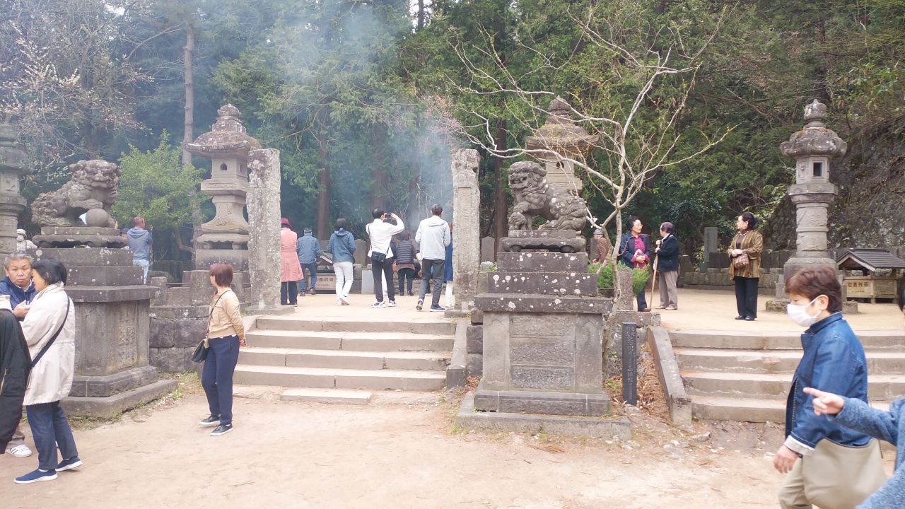 飯盛山は、鶴ヶ城を観光した後に行きました。近くには石部桜があり駐車場も一部重複していました。城下町を一望に見渡す小高い山で、その頂上には約1650年~1700年前につくられた前方後円墳であり、隠れキリシタンの祠もあり、地元滝沢村住民の共同墓地でもあり、古くは古代四道将軍、弁財天、日本武尊などの神話も残り、1600年以上、連綿と会津盆地を見守る信仰の山です。