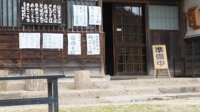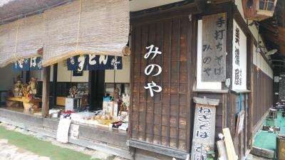 大内宿の駐車場が大規模ではないと聞いていたので芦ノ牧温泉宿を8時過ぎに出て着いたのが9時前でした。既に駐車場にはそこそこの車がありました。駐車場に着く前に前の車について行ってのですが宿の人でした。通勤しているのかも?宿に入ると殆どが準備中。十割そばが名物らしいですが、他にもねぎそば 、 十割ねぎそば、 もち類や限定十割そばがおすすめですが準備中。自家製きなこもち、自家製おろしもち、ぴっかぴか光そば(そば粉9割:うどん粉1割で打ったそばでのど越しが良く、盛り付けした際にぴかぴかと光って見えるのでこの名前になったそうです)なども人気があるそうです。仕方なく自家製味噌を買ってかえりました。