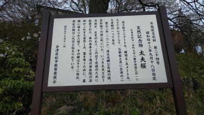 弟の南秀という滝沢南岳院の法師がこれを大変悲しみ、霊を弔うために、墓側に植えられた桜で、その樹はすでに枯れ、現在の樹は二代目と伝えられているそうです。今回の私達の東北旅行は各地で桜が満開でした。勿論、太夫桜も満開でしたが、通路の左斜面に咲いている為「太夫桜」を知らなければ素通りしますので、飯盛山のみどころで検索すると、飯盛山の案内図があるのでコピーして行くことをお勧めします。- 旅行時期