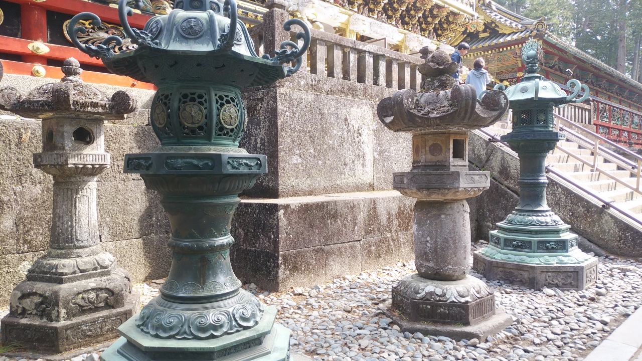 東照宮の正門を潜ると左側に美しい風貌を放っている国の重文に指定されている塔がありました。この塔の垂木は不思議な事に一層から四層までは和様の「平行垂木」で、五層のみが唐様(禅宗様)の「扇垂木」で、謎の一つだそうですが肉眼でも違いがはっきり見えました。また、五重塔の真ん中には巨大な木の柱「心柱」がぶら下がっていて、柱の底部は礎石から10センチ浮遊している事で地震対策にもなっていたそうで、東京スカイツリーに応用されているといわれているそうです。それにしても美しい塔でした。