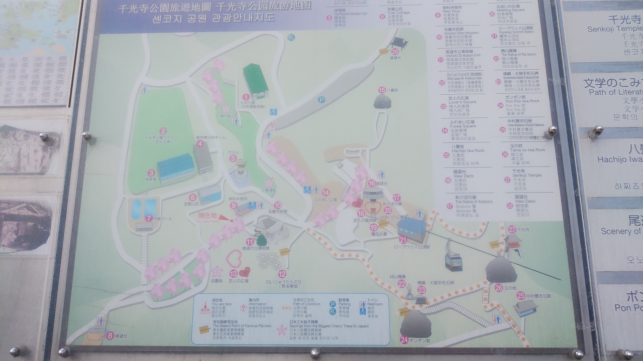 今日は千光寺公園の駐車場に駐車(有料1日600)して公園内にある千光寺に行きましたが、千光寺から公園に行くより寺社巡りをした方が楽なので寺社巡りをした後ロープウエイで公園に行きました。ロープウエイから出たら「恋人の聖地」があり「あけぼの」の銅像を見て展望台へ上がりましたが景色が良かったです。その後、園内にあるプティアノンで遅めのランチ(料理は美味しかったです)をして満開では無かったですが桜を見ながら散策し充実した1日でした。
