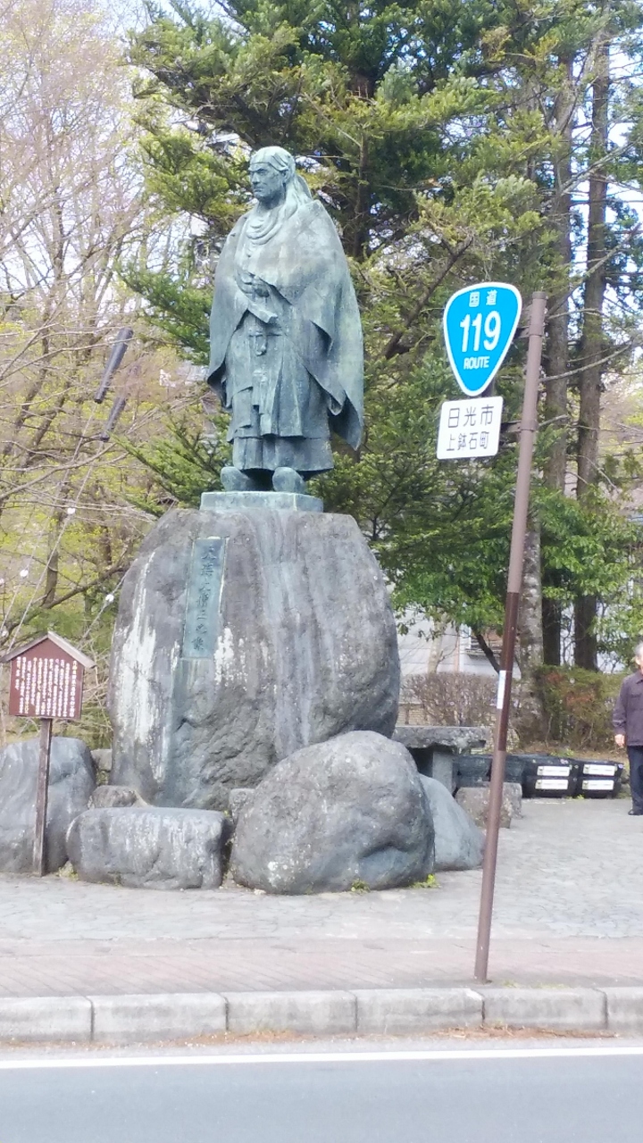 天海大僧正の対面の日光金谷ホテルの入口にあります。板垣退助は明治初期に自由民権運動を展開し、自由党ほ結成した政治家で、「板垣死すとも自由は死なず」の名言で知られています。板垣退助の像は一昨年行った高知城にもありましたが、日光に何故板垣像があるのか不思議でしたが、、戊辰戦争の際、日光廊に立て籠った幕府軍大鳥啓介らと対峙した官軍の将であった板垣は、二社一寺のある日光を戦火に晒すことを避けるため、幕府軍に無欠開城を迫り日光が戦火から免れ、その遺徳を称え昭和4年に銅像が建てられたそうで、32歳当時に官軍の服装で日光の街並みを眺めている銅像だそうで、観光する度に歴史の勉強になり高知、岐阜以外にもあるかもしれません。