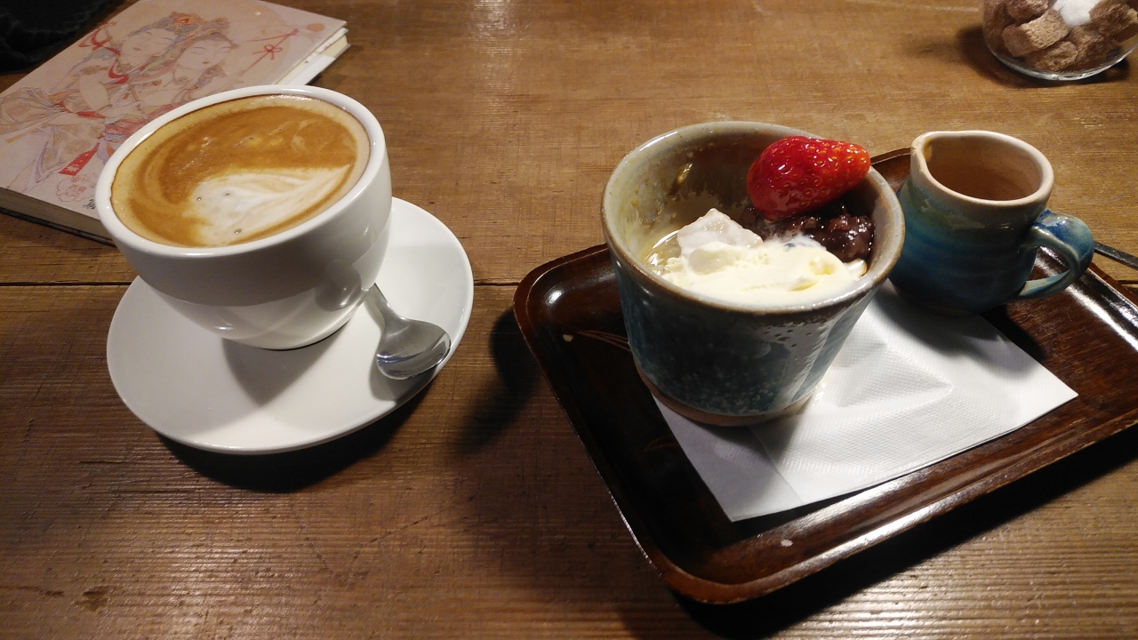 今日は早朝から東照宮・二荒山神社を観光して遅めの食事をして神橋付近を観光後輪王寺に行く階段の登り口にあるので途中に寄りました。平日にも拘わらず結構満席状態でした。クリームあんみつとカフェラテを注文し美味しくいただきました。外人さんも多くて店内には日光で貰える御朱印が壁に貼ってあり、歩きすぎで疲れた足の休息に助かりました。