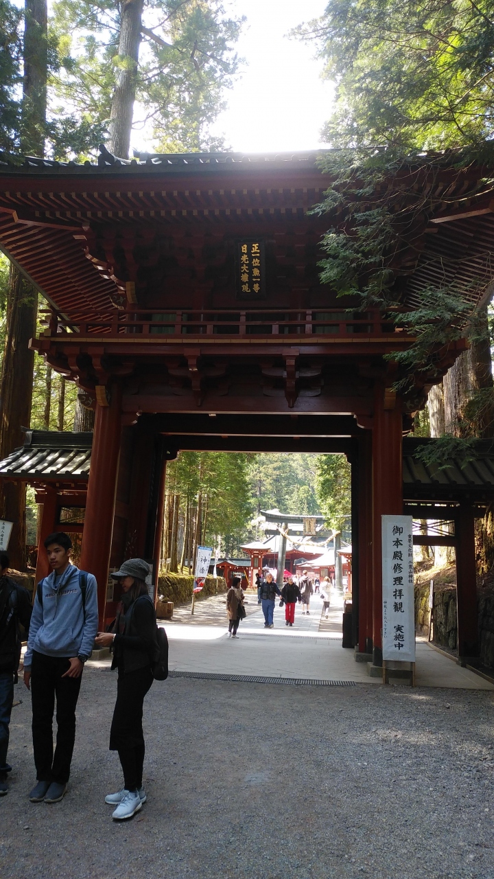 日光東照宮から上新道という参道を歩いていくと、「日光二荒山神社」という石碑を過ぎると、朱塗りの楼門と言う2階造りでの門で屋根があり各階に屋根があり「二重門」と呼ばれるそうです。この楼門は勝道上人が多くの苦難を乗り越え男体山の登頂に成功して1200年の年月を記念して建立されたそうです。ここは初めて観光したのですが、上新道沿いに石灯篭が並んでいて巨大な杉の木の間を歩きながら行くと不思議な気分になりパワーを頂いた感じでした。
