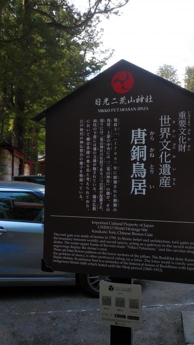 また、鳥居の柱の足元には「蓮の花弁の彫刻」がありますが、東照宮の陽明門と同じかもしれません。神社に仏式の「蓮の花弁」というのは変ですが、日光には「神仏混合」の痕跡が数か所で観光できましたので、「神仏混合」の影響が残っているのだと思います。- 旅行時期