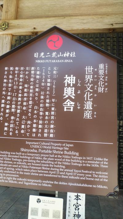 日光神橋の近くに参道入口があり、有名で世界遺産なのに人が少ない神社で古くは新宮(現二荒山神社)・滝尾神社と共に日光三社と呼ばれ、勝道上人が男体山の神(大己貴命)を祭る祠を建てたことに始まるため、現在は別宮になっているが「日光の原点」で、4月17日二荒山神社の弥生祭に三社の神興しが渡御するといわれている。境内には小玉堂、拝殿、本殿、笈掛石等があり穴場的な場所でゆっくり観光できました。またこの神社の御朱印はここではなく二荒山神社本社でしか貰えないので注意。