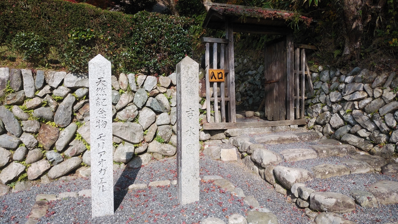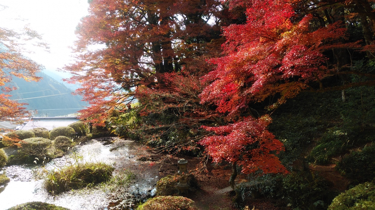紅葉見頃のネットで場所を検索しても出ていない紅葉の名所です。今迄加計方面には何十回と行っていますが素通りしていました。朝8時30分に出発して10時30分過ぎに到着。駐車場が無いとの事前調査で、太田川交流館かけはしに行き、係員に吉水園に行くと言うと無料で停められました。結構、駐車していて有名な場所みたい。看板の地図をみて坂を登ると人でいっぱい。吉水園は江戸時代の天明元年の春、加計隅屋16代当主の佐々木八衛門正任が山荘として建設したそうです。園内には「吉水亭」があり、古絵図や永平寺竹広大禅師筆の額や遊戯海・こ月の額が掲げられ、雨戸上部の欄間には菊水・水車・水仙の透彫、物入の長い扉には紅葉狩の大和絵があり訪れた人でごった返していました。その他「たたらの神様」金屋子社や松林庵薬師堂、真っ赤な鳥居等、紅葉と見事な見応えでした。鑑賞した後、吉水園の前で甘茶が販売されていたので、松尾芭蕉の猫の絵がかいてある紙コップで飲みましたが、後から甘味を感じて美味しかったです。他にも「延命の小ぶくろ」という銘菓の旗がありましたが、昨日で売り尽くしたそうです。帰り道に団体さんが大勢登って来たので、早く観れて良かったです。一度は訪問する価値があり素晴らしかったです