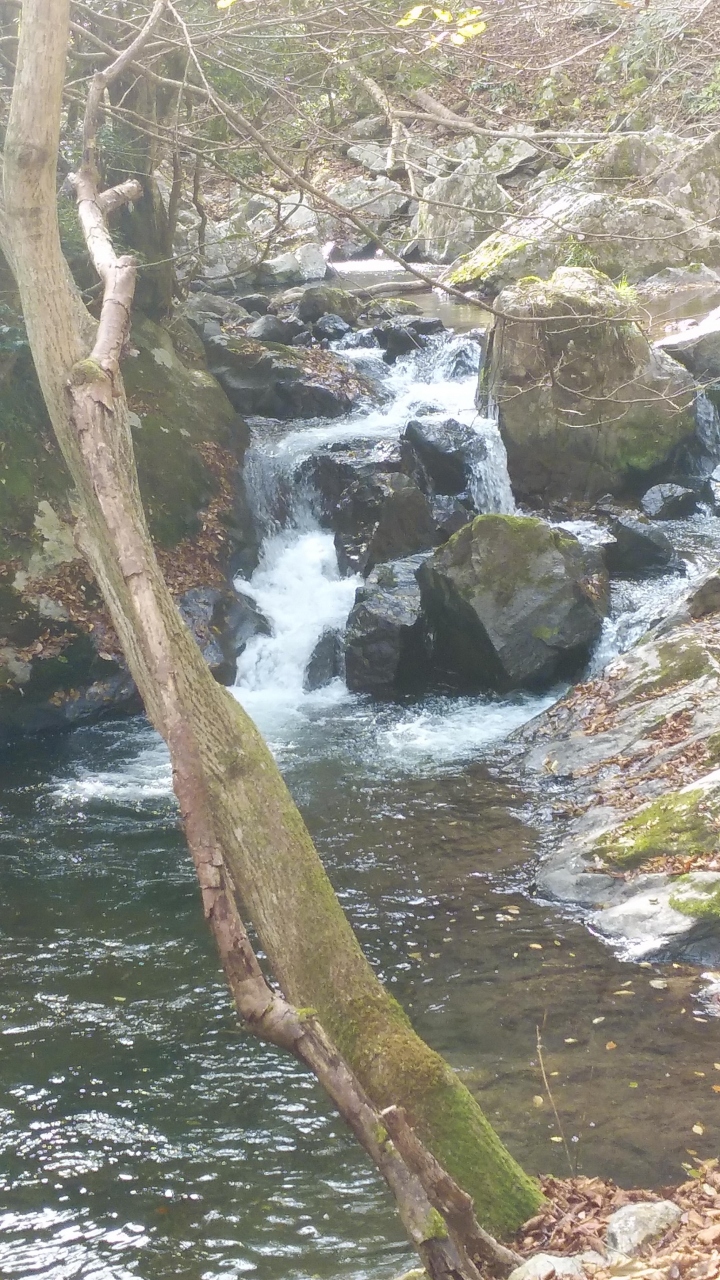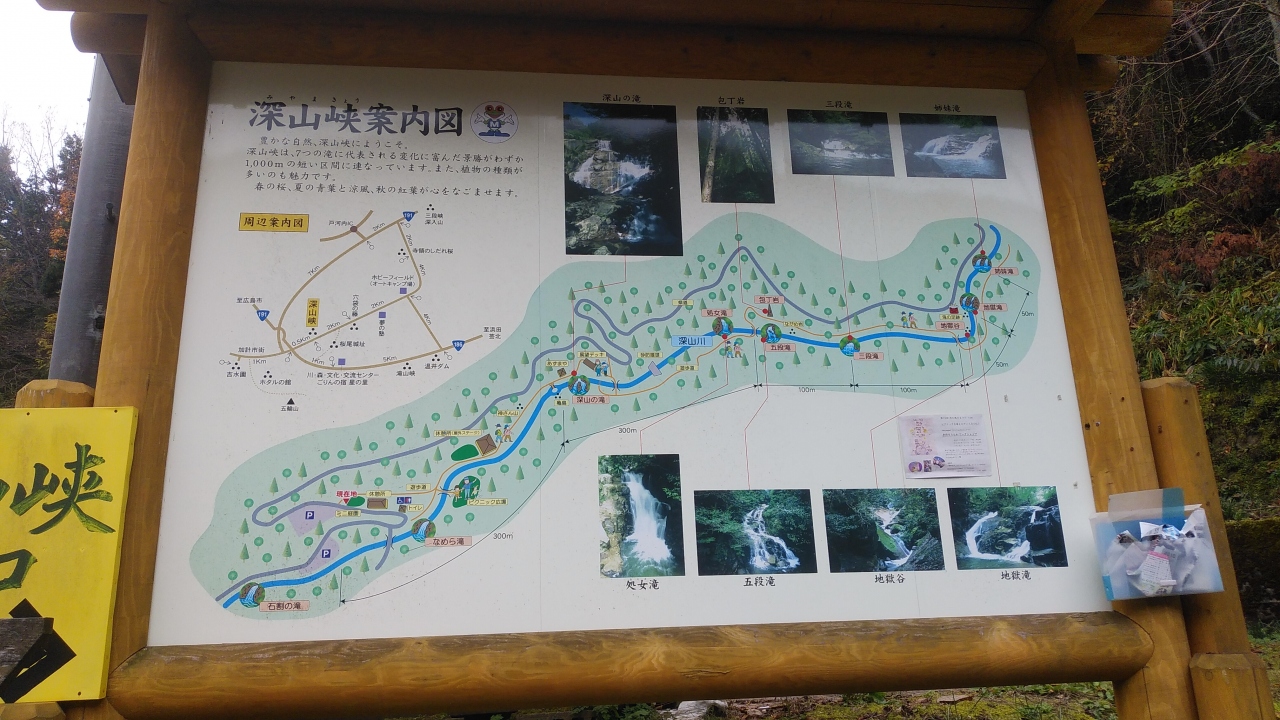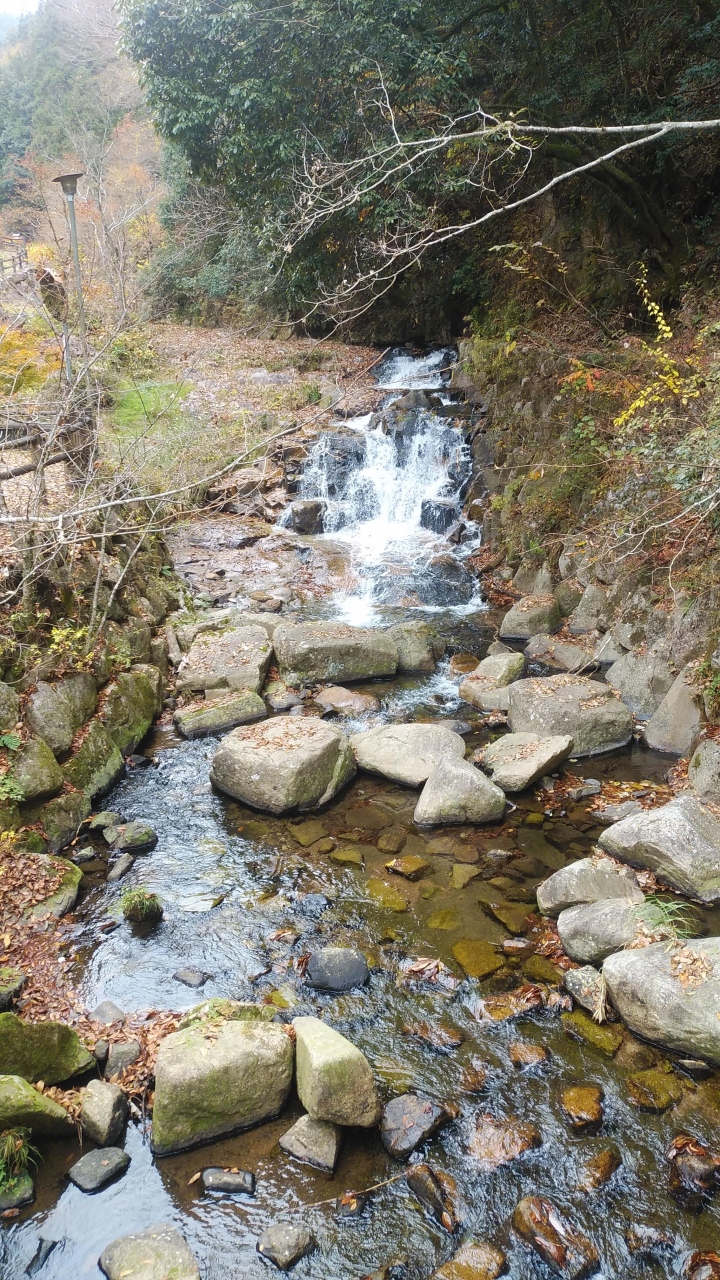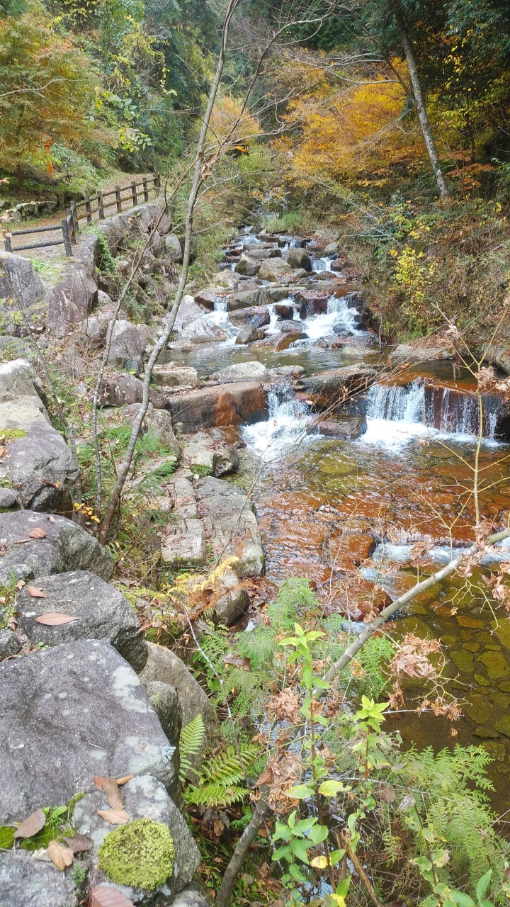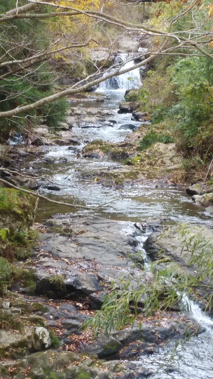 今日は、加計にある吉見園を見た後に寄ってみました。訪問する予定では無かったので何の準備もしていなかった間ですが、駐車場にあった地図をみると近くだったので行ったのが間違いでした。行き方は、吉見園の坂を下った最初の道路を真っすぐ(温井ダム方面ではない方向)進めば着きました。でも、深山峡の看板と駐車場があったのですが、滝の一番上に車で楽に行こうと思ったのですが、すぐに車1台が通れる道になり引っ返せなくなり、走り続けましたが、左は崖で落石注意、右は滝らしく絶壁で、カードレールが無い場所もあり、運転を誤ると転落しそうでした。狭い道は2k位あり、その後は広い道路と民家がありました。すぐに引き返して同じ道を降りると、途中に車を停めて車道から滝を観ている外人さん等がいました。一番下にある駐車場に入れて歩いて滝を目指しましたが、観光客は誰もおらず、途中で断念しましたが、紅葉はよかったです。