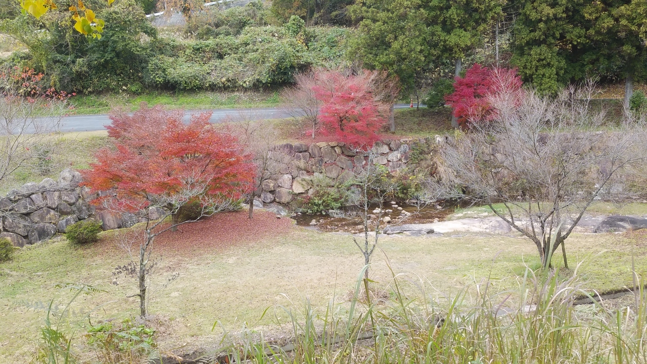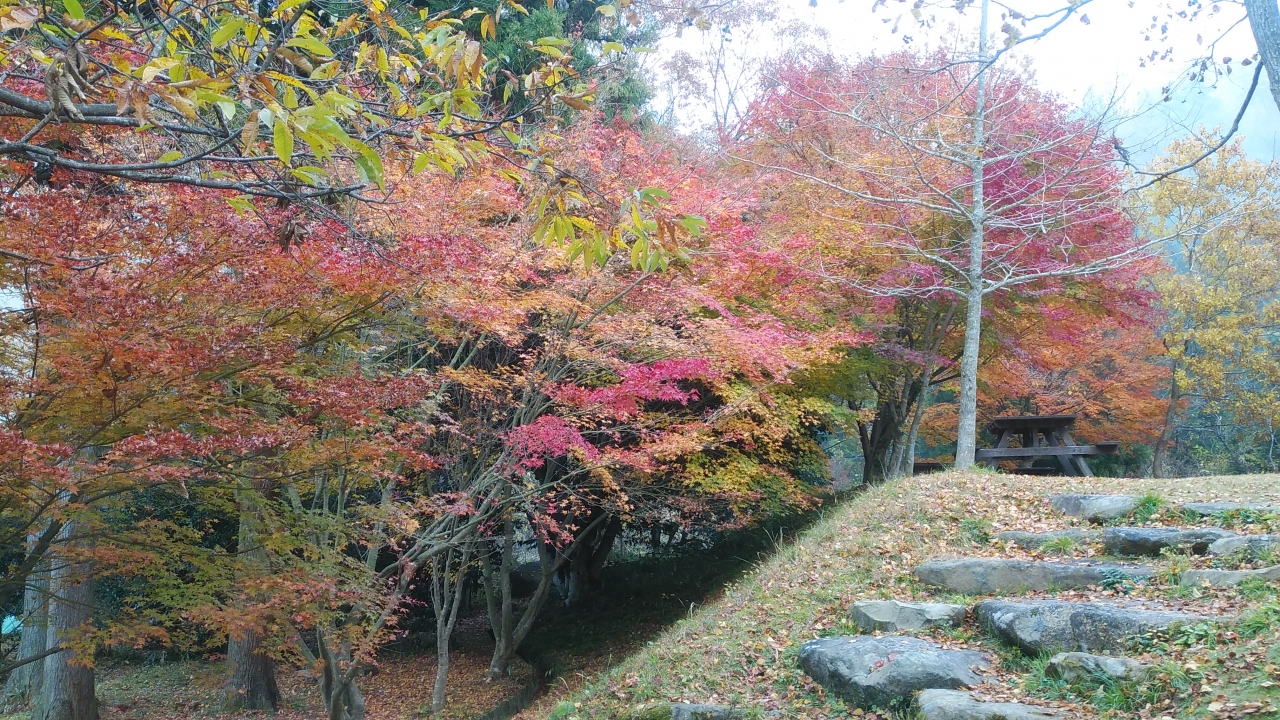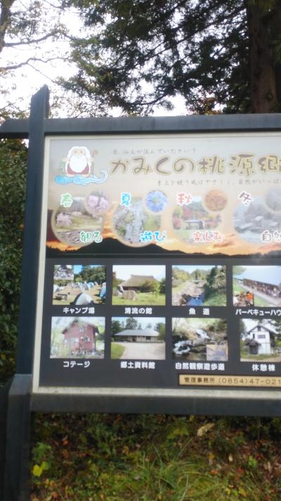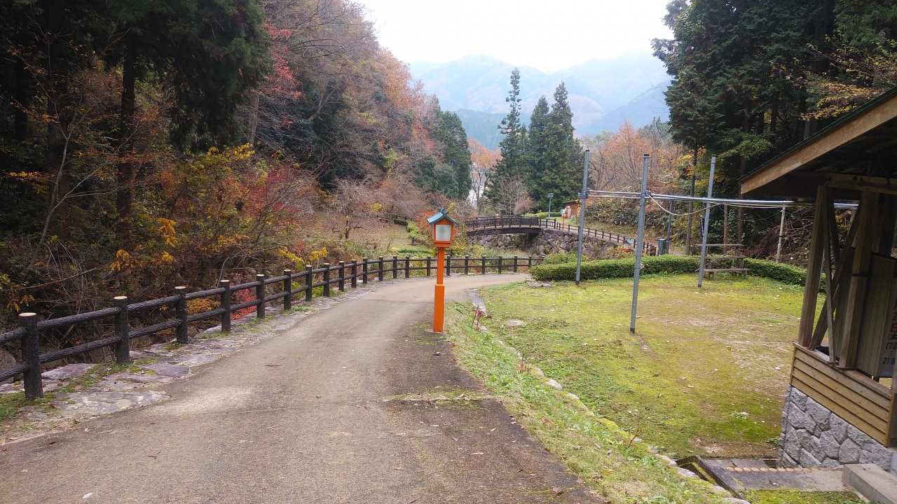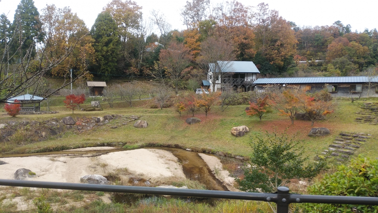 大東町上久野にある川遊びがメインのキャンプ場で有名らしいですが、秋は紅葉も有名と言う事で、八重滝から松江道を通行し三刀屋ICを降りて、奥出雲葡萄園で食事して45号線を走行しましたが、途中から左は崖崩れ注意、右は絶壁という車1台がやっと通行できるという、狭い道路を走り怖かったです。三刀屋ICから30分以上走行して無事到着。