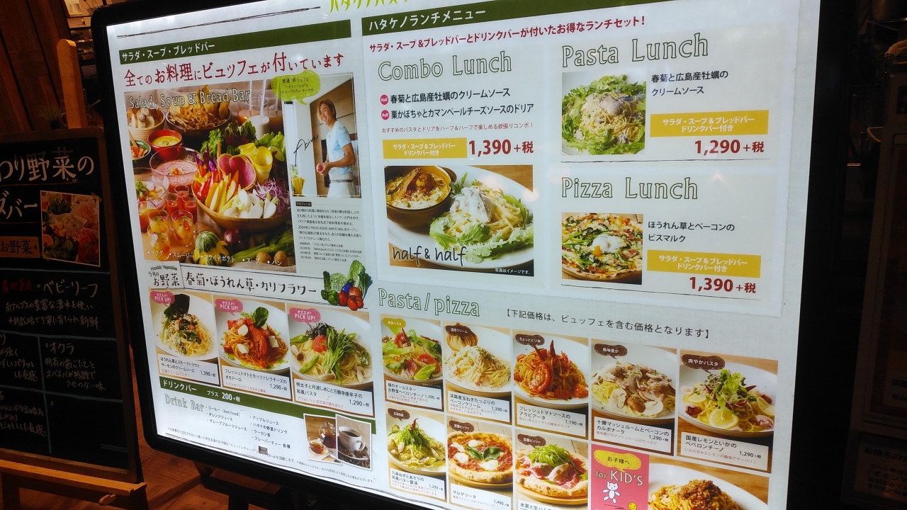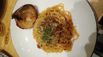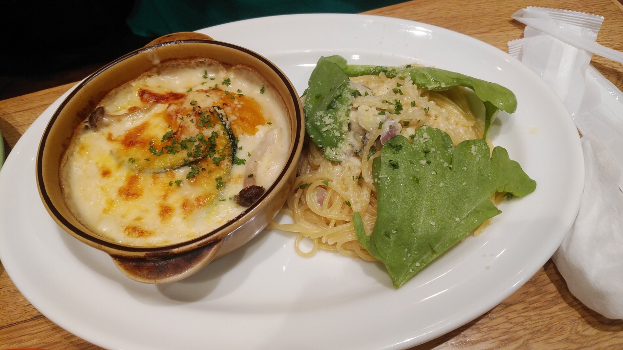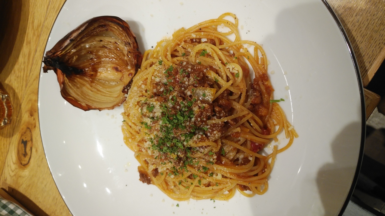 今日はクリスマスプレゼントを自分で選ぶというので孫を連れて買い物にいきランチしました。食事処も孫が選んだハタケノパスタでした。開放感がありサラダバーの種類も豊富で良かったです。私はボロネーゼを、妻はランチコラボで本日のパスタとドリアを、孫はベーコンクリーム、全員サラダバーと妻と孫はドリンクバーを注文。サラダーバーは種類が豊富で美味しかったです。又パスタに着いている玉葱が甘さがあり非常に美味しかったです。