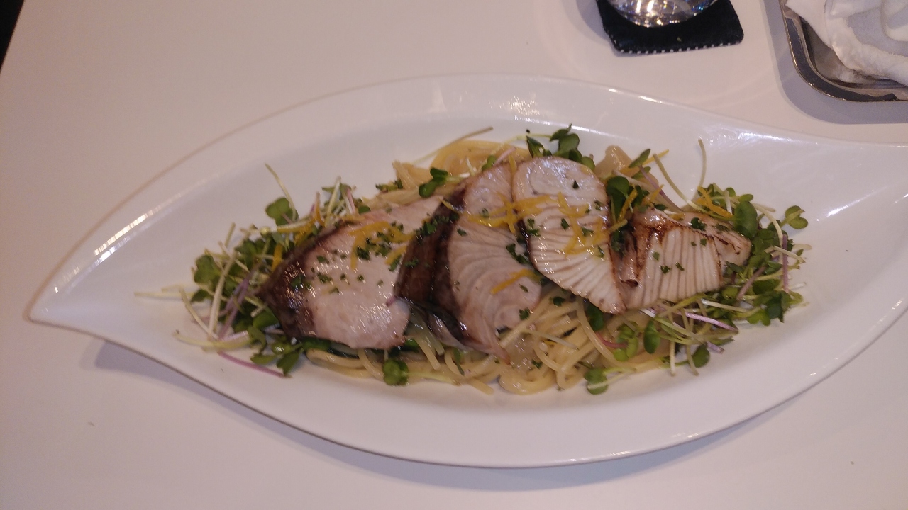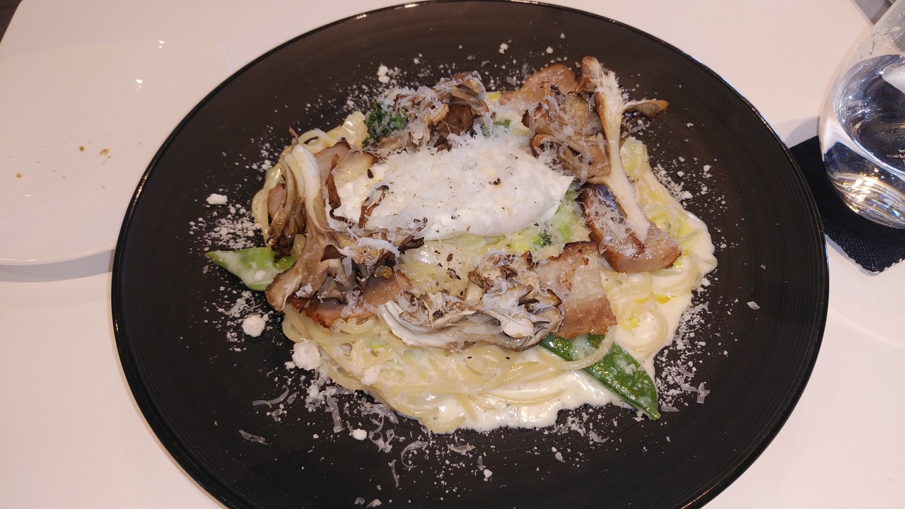 年末より1月初旬までインフルエンザA型感染でダウン。初旬の最終日に地元の神社と尾道にある健脚で有名な西國寺に初詣に行った後、尾道ランチお薦め厳選15の中から爽風カフェを選びナビにセットし走行。尾道と言えどみろくの里の手前から海岸沿いの狭い道路を走行し、常石造船手前にある境ゲ浜マリーナ内にあり、こんな場所にという場所でしたが、高級感があって景色は抜群でした。2年位前からイタリアレストランで営業しているらしく、パスタスペシャルの中から、瀬戸内天然寒鰤と菊菜のスパゲティと神勝寺卵と自家製ベーコンのカルボナーラ広島県産女鹿まいたけのグリル添を注文。食後にSOFUパフェとコーヒーを注文。パスタは地元食材で非常に美味しく、デザートとコーヒーも非常に美味しかったです。ランチとしては5千円以上でしたが、満足出来る一時でした。