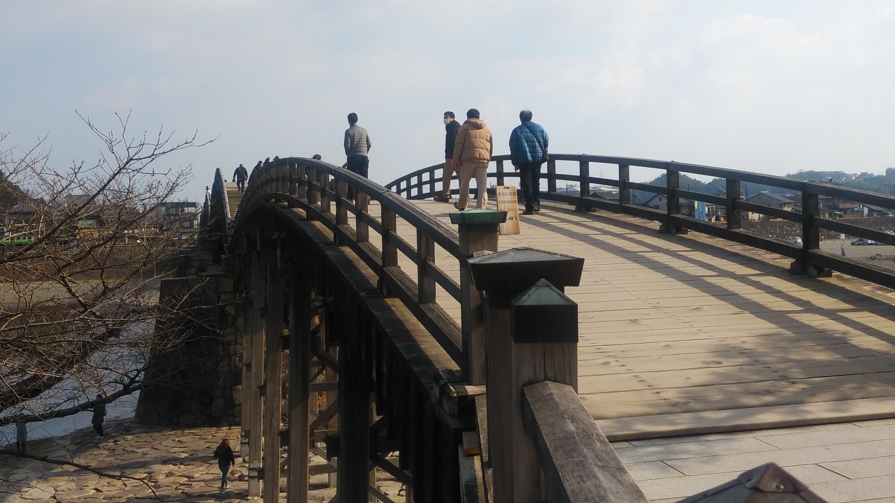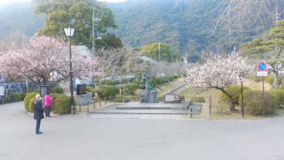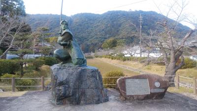 銅像があるのは錦帯橋の先にある橋を渡った公園の無料駐車場に車を停めて、公園の中を歩いて錦帯橋に行く歓談を登り道路を渡った階段をおりると銅像があります。佐々木小次郎は岩国の住と言われており、勤怠橋畔で柳の枝が燕を打つのを見て燕返しの術を会得したと言われているそうです。武蔵と決闘をした巌流島は同じ山口の下関にある小島ですので両方みるのも良いと思います。岩国生ということで地元や広島では有名ですが出生については諸説あるようで確定はしていないようです。この近辺は春になると桜の名所です。今日は銅像の両脇には白梅と紅梅の花が咲いて綺麗でした。春は銅像から川沿いに向かって桜が咲き誇りますので一層綺麗です