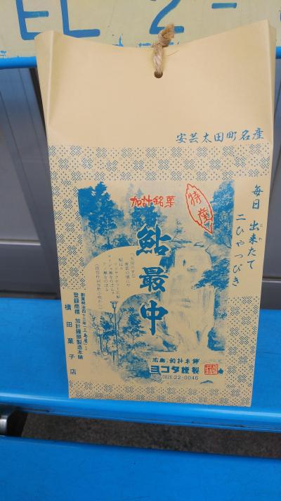 鮎最中の暖簾がかかった店の前に優しそうなおじさんが立って売っていました。最中の形が鮎の形をしていて、変わった最中だったのでお土産に買って帰りました。最中は5個で540円、隣の加計饅頭は6個で540円でした。最中の中は白小豆餡で美味しく、香りがあり、ほんのりした甘さで、ひつこく無く良かったです。加計では創業90年の老舗だそうです。- 旅行時期