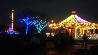 今日は朝早くから娘と孫を連れて福山のみろくの里に行きました。10時半過ぎに着きましたが、昨日の雨で一部遊具が休止していましたが、天候が小雨模様で入場者が少なかったのが幸いしたのか?、孫たちは自分の好きな乗り物に何回も乗れて楽しそうでした。16時前後から天候も回復したのと、イルミネーション目当てのナイトパス利用者が多いのか、急に人が沢山になりました。夜6時半からのイルミネーション点灯のカウントダウンで点灯したのは綺麗でした。7時半から花火とのことで花火に間に合うよう昭和の湯で食事をしましたが、花火が始まるというので、食事途中で孫達は急いで会場に行き、私達夫婦は留守番。花火が終わり食事を再開し、私と娘婿以外全員昭和の湯に閉館ギリギリの9時迄滞在しました。9時半位に帰路についたのですが、孫達は車に乗ったとたん眠りに尽きました。