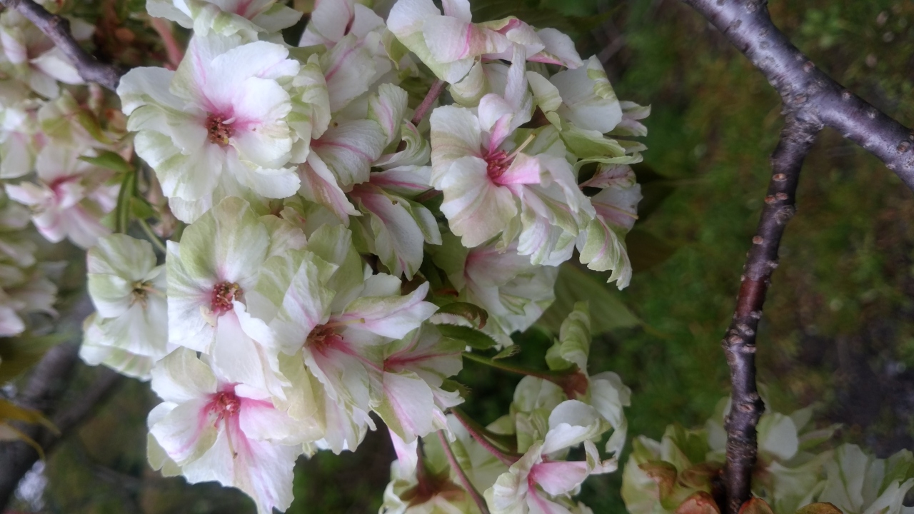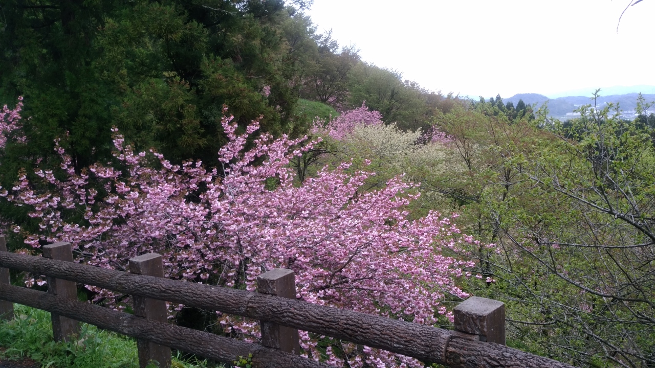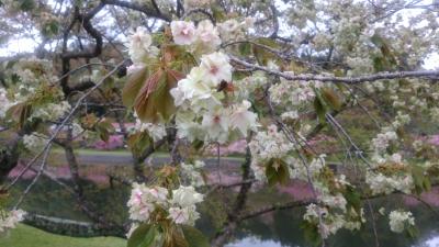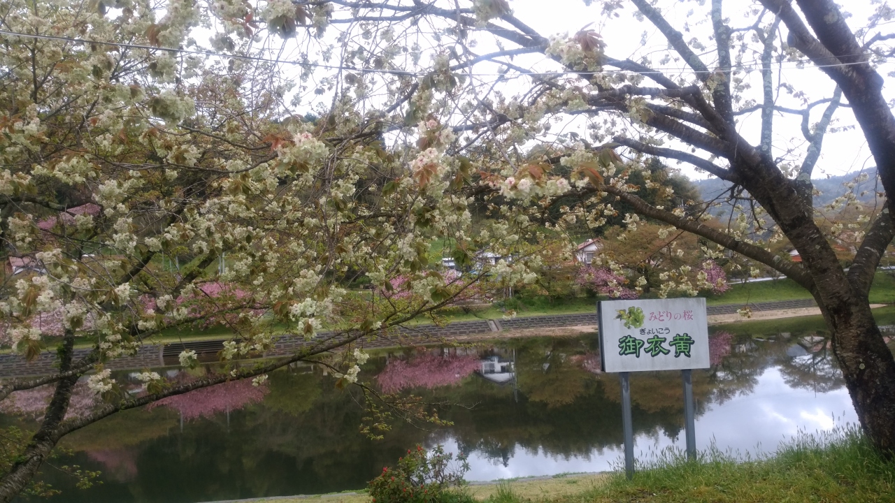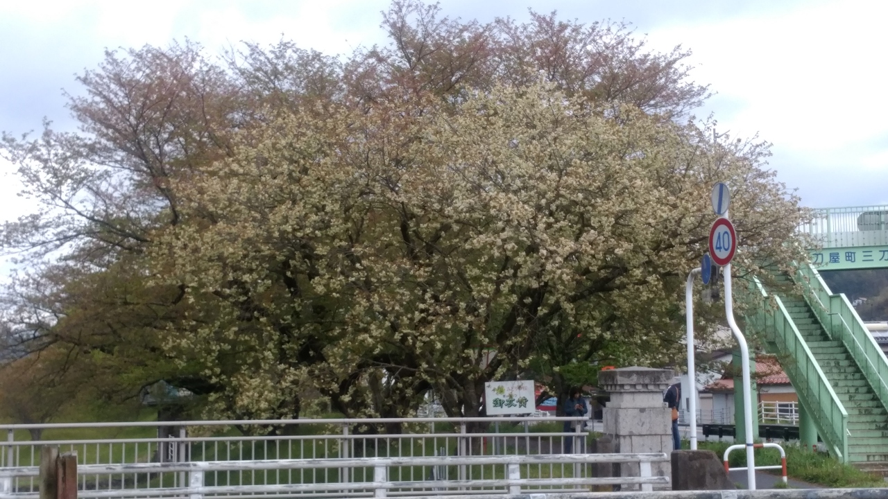 前から島根県の雲南市にある御衣黄という緑の桜を見に行きたかったのですが、チャンスに恵まれず、天気は曇り・大雨の予想ですが満開と言う事で早朝出発しました。松江自動車を走り約4時間後に到着。途中標高の高い場所は大雨でしたが着くと止んでいました。天気がよくないのに駐車場はほぼ満杯で、三刀屋川の両岸にあり主体は染井吉野700本ですが、関山・御衣黄という珍しい桜並木です。染井吉野の開花して2週間後が見頃だそうです。両岸に御衣黄が88本、城跡に29本咲いていました。一見すると見えにくく写真に撮りにくい桜ですが、八重桜(関山)は230本咲いていてピンクで綺麗でした。残念なのは染井吉野と一緒に見られないということでしょうか。