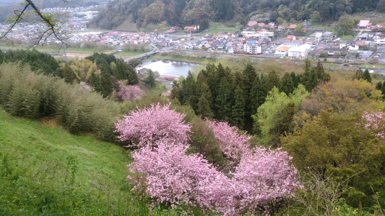 非常に珍しい緑の桜(御衣黄)が咲いているという三刀屋公園に行ってきました。公園の傍を流れる三刀屋川両岸に約K続いています。今年は4月1日に染井吉野が満開になり、13日~御衣黄と八重ピンク(関山)が満開でした。公園の対岸に城跡があり、駐車場がありますが車1台がやっと登れる程度で、徒歩で登っている人が多かったです。御衣黄は川沿いに89本、城跡に29本咲いているそうですが、城跡のほうが御衣黄が纏まって咲いていました。御衣黄は緑で写真には写り難く、関山が傍に咲いていてピンクが綺麗でした。御衣黄は全国的にも珍しく、緑色から黄緑色から黄色そして中心部が赤くなるという桜です。しかし写真では葉っぱが生い茂っているとしか見えませんが、近距離で見ると綺麗です。同一場所で、染井吉野、御衣黄、八重桜(関山)、白い桜と複数咲いているのも珍しいと思います。