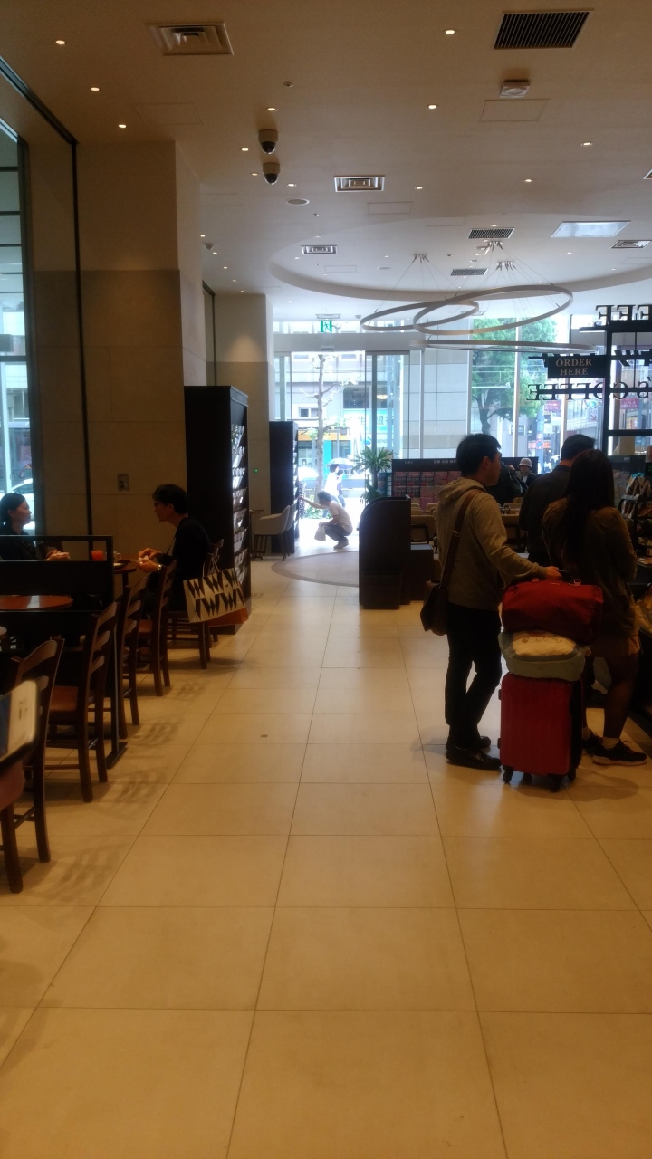 NYから一時帰国した息子が紙屋町のマッサージに行くのに送って行った後に、永斗麺と言うラーメン屋でランチをした後市営駐車場に帰る途中に寄りました。立町電停近くで、入口は旅行会社ですが、その奥にあります。その隣は広銀があります。私達の近くにもタリーズ珈琲がありましたが撤退したので1年ぶりで、ブラックコーヒー二つとキャラメルラテを注文しましたが久しぶりの味で美味しかったです。