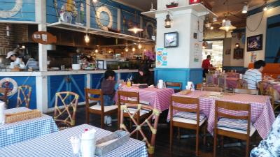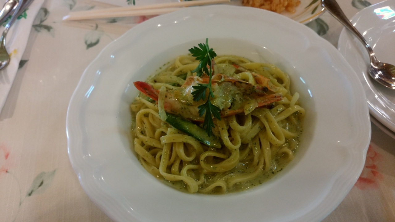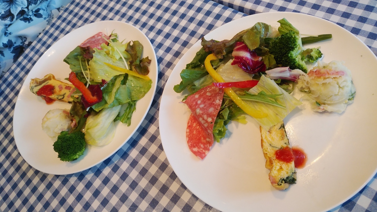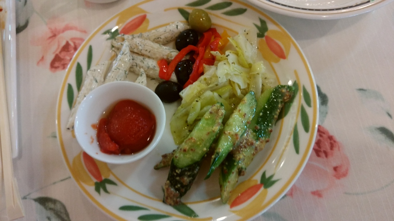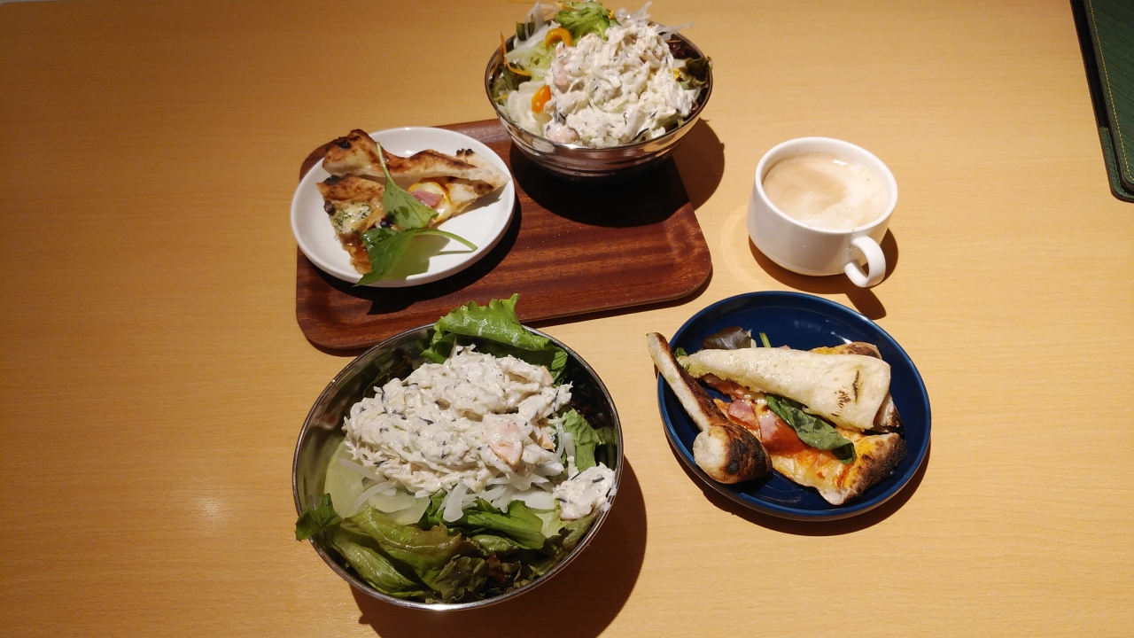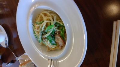 孫の玩具を買いにトイザラスに行った帰りに、女房と娘達で行った店が美味しかったというので行きました。昼時でほぼ満席だったので若干待ちましたが、外観・店内とも感じの良い店でした。夫婦揃ってパスタランチを注文しましたがパスタの内容はそれぞれ別のパスタを選択しました。前菜はバイキング方式になっていて種類が豊富で野菜も美味しく。前菜だけでも満腹といった感じです。パスタも妻推薦するだけあって非常に美味しかったです。