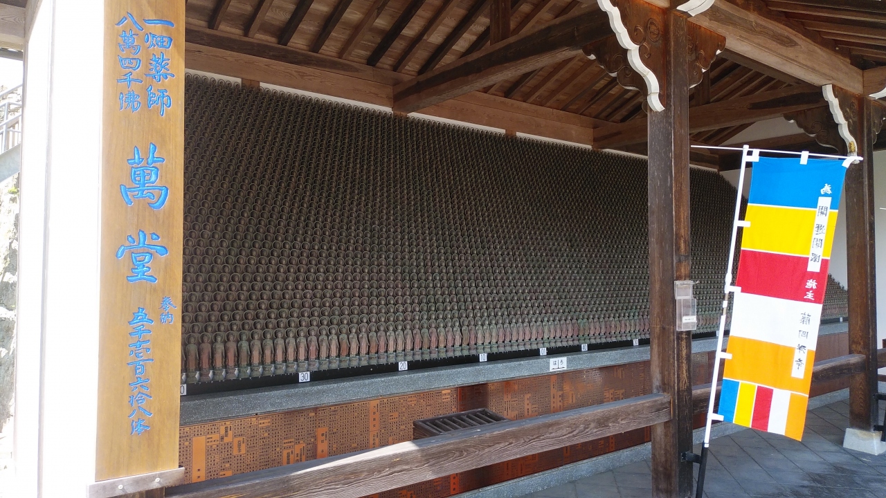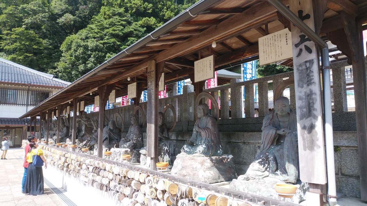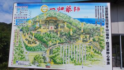 出雲に着いて最初に訪問しました。この寺は島根半島の中心(宍道湖と日本海の真ん中)にあり観光では時間がかかり中々行けませんでしたが、やっと訪れる事ができました。出雲神話の国引で名高く、一畑薬師教団の総本山で創開は平安時代寛延6年に日本海の赤浦海中から漁師の与市が引き上げた薬師如来を本尊として御祀りしたのが始まりで「目やくし」「子供の無時成長の仏様」はしめ諸願いに霊験があるそうです。頂上まではくねった登り道を走りますが道路は整備されていて二車線あり、標高は約300Mあるそうです。頂上の駐車場から商店街や百八基灯籠を通って法堂(座禅堂)横の階段を登り仁王門と鐘楼堂を通って本堂へ参拝。本堂手前には十六羅漢堂があり見事で十六羅漢全部に参拝しました。本堂左には八万四千仏堂があり、小さな仏像は壮観でした。寺務所・売店、下生閣で病に効くお茶を飲んだあと目の病に効くと言う飴を買いました。帰路の途中には動物愛護納骨堂と一畑コテージがありその側の階段を下って帰りました。規模が大きく一度は訪れる場所だと思います。