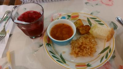 今日は娘からランチに誘われ御馳走になりました。前から娘と気になる店があったので少々遠方ですがドライブを兼ねていってきました。安佐南区沼田にある「吉山ビアンコ」で川の辺にある静かで雰囲気の良いお店でした。メニューはパスタに4種類のクリームソースが選べるコースを選択。パスタソース・トマトソース・クリームソース・ペペロンチーノの4種類でささみと絹さや入りのクリームソースを注文しました。初めに冷水スープから始まり、前菜・クリームパスタ・デザート・ドリンクと店内も落ち着いた雰囲気で美味しかったです。