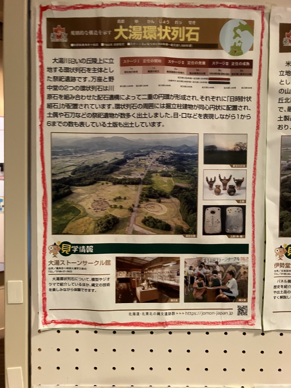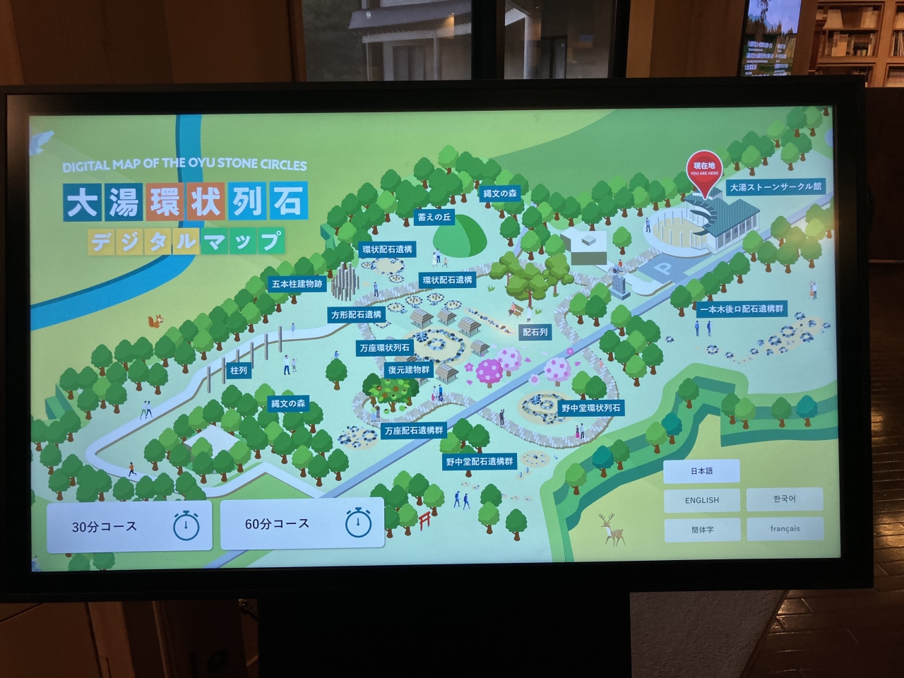 日本を代表する二つのストーンサークルで構成されていて、お墓や祭りの為の特別な場所だったそうです。でもストーンサークルには人が居住した形跡がないという不思議なところです。広大な敷地にいくつものサークル跡があり、1つしか見れませんでした。今日は世界遺産のブナ林に行く途中で通行止め観光出来なかったため到着が17時寸前に到着しました。