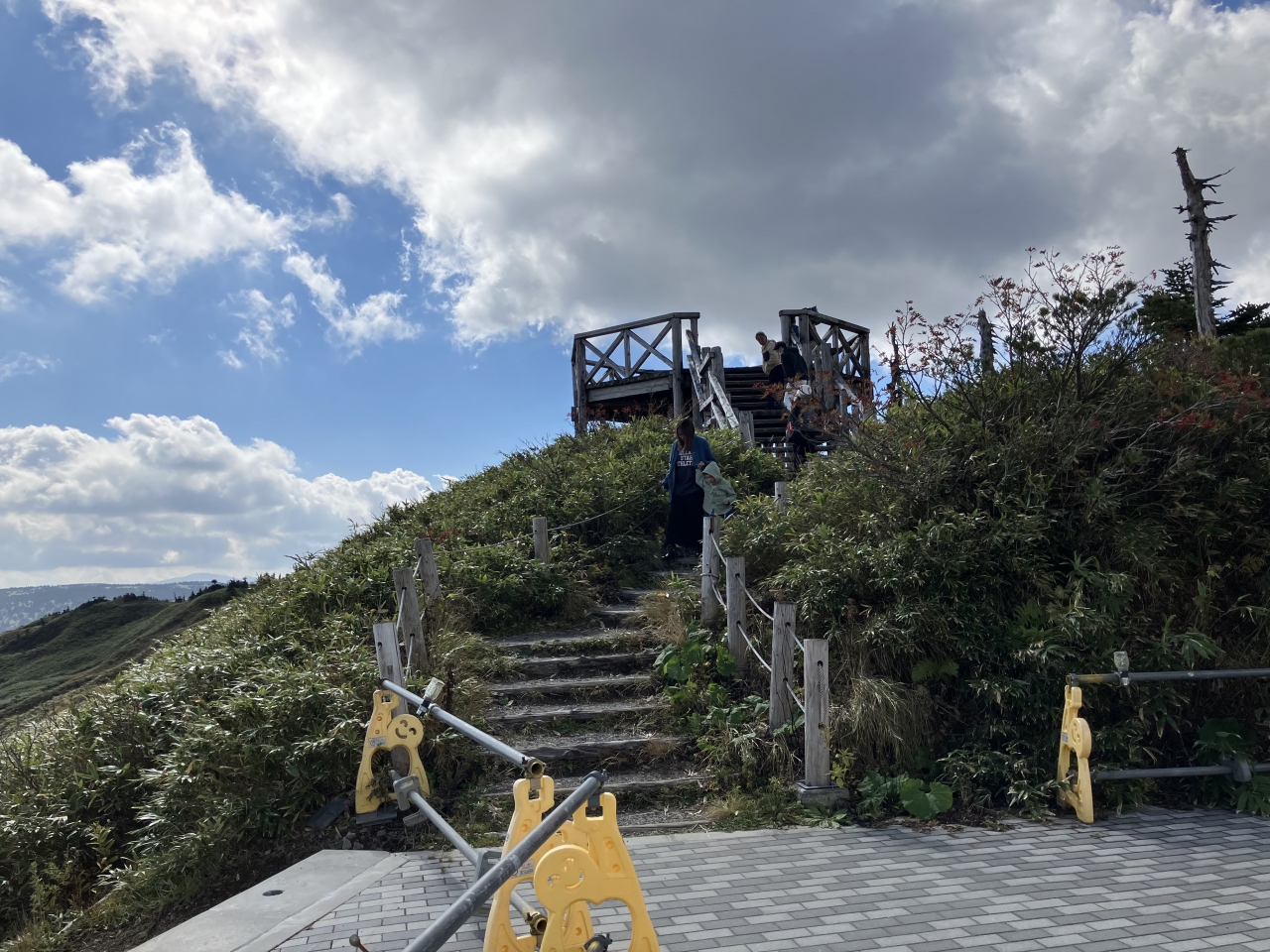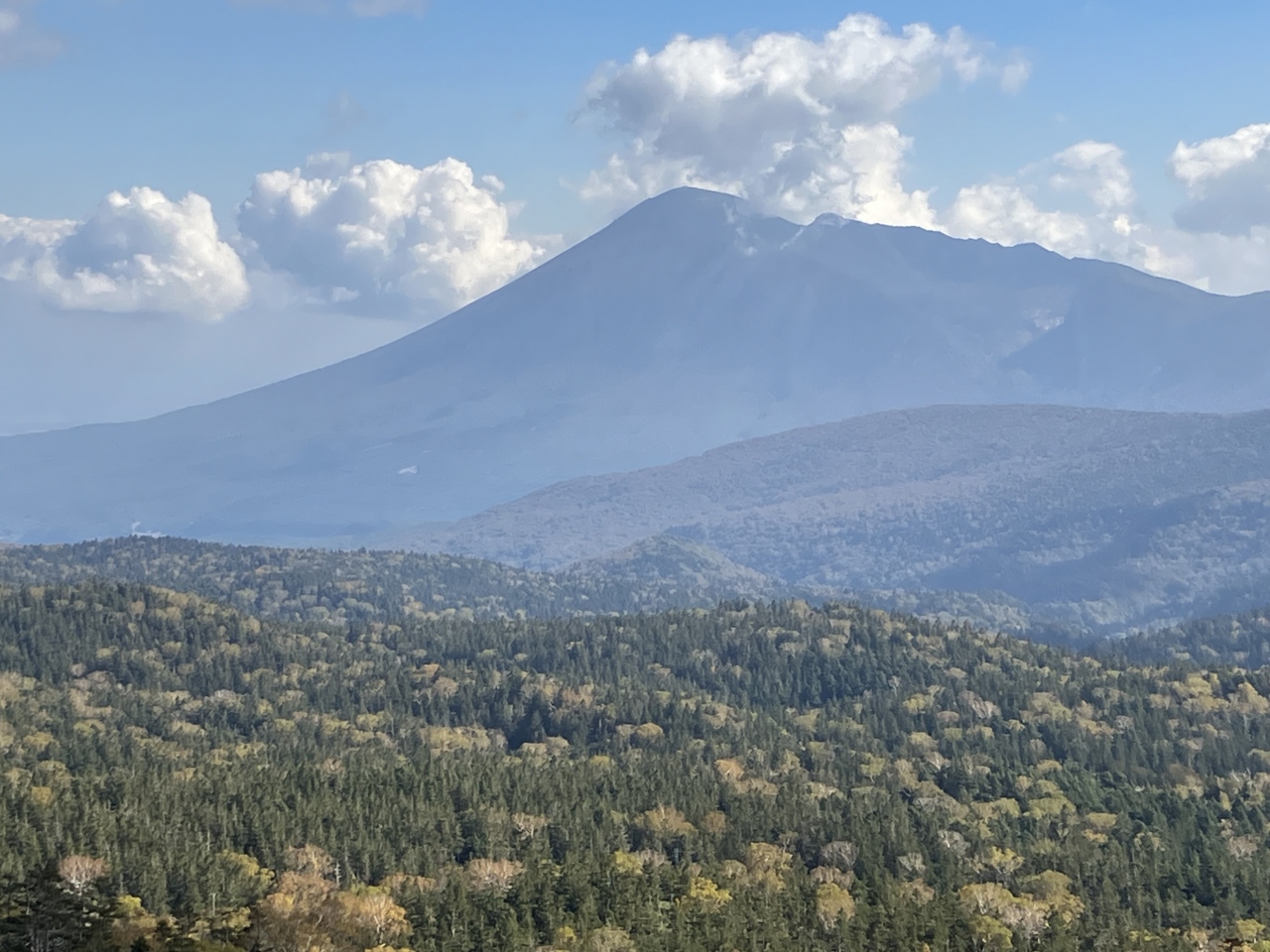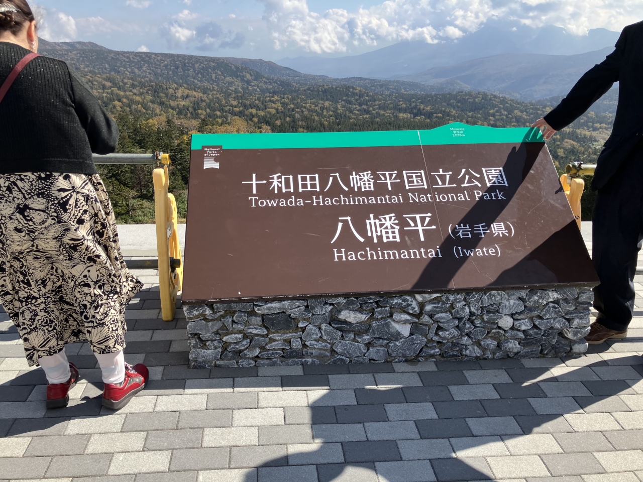 5年前に観光する予定でしたが時間がなくいかれなくて、やっと観光にくれました。八幡平を登る途中にある「ふけの湯」の立て看板がある場所から渋滞が発生して急に車が進まなくなり、頂上に着くと駐車場も渋滞していて、沢山の人でごった返し、中には熊よけとみられる鈴を鳴らしながら歩いている人もいました。展望台からの景色は壮大で紅葉していて美しく、岩手山も身近に見えて来た甲斐があり良かったです。