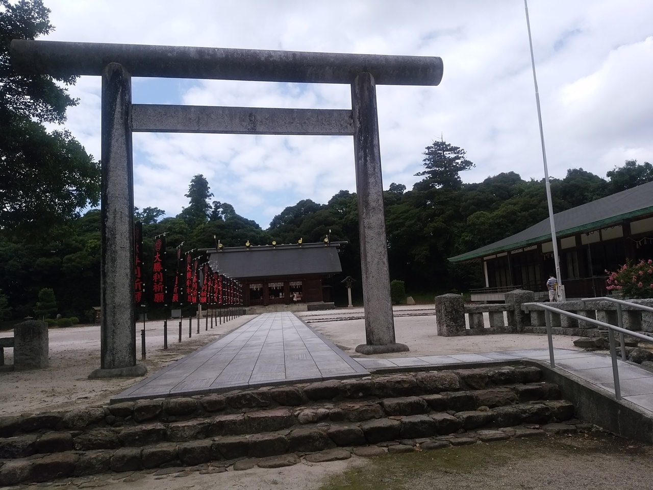 松江城に隣接した松江公園内にあり、近くには城山稲荷神社があります。明治維新後の国難に殉じた旧出雲国、隠岐国出身の英霊2万2千余柱を祀ってます。第二次大戦後は島根神社と称していたそうですが、主権回復後は元の社名に複したらしいです。鳥居がある階段から黒色の旗に朱色で「大勝利祈願」と書かれた旗が本殿まで続いていて、荘厳な雰囲気でした。