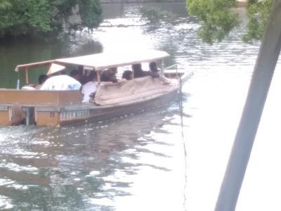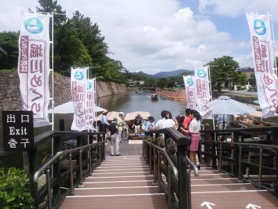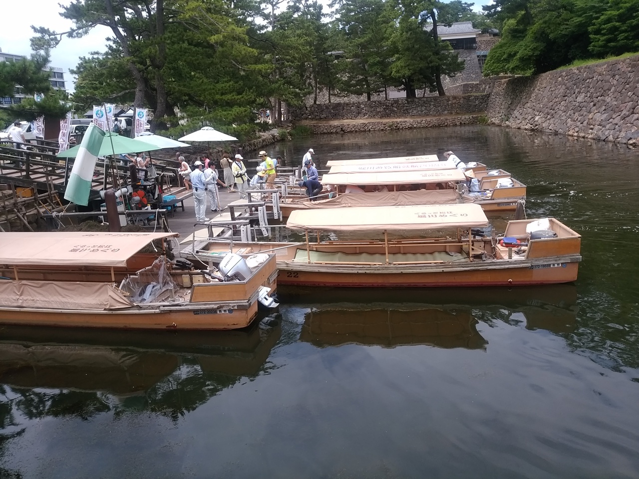 国宝松山城を囲む堀は築城時の姿を今ものこしているそうです。堀を小船で巡り城下町の風景、八雲ゆかりの地等を遊覧し、堀から見上げる城は地上から見るのとは違う表情を楽しむ事ができます。遊覧中は16もの橋を通過し、低い橋は屋根を降ろして通り抜ける事もあるそうで、堀の美しさや自然を楽しむ事が出来ました。