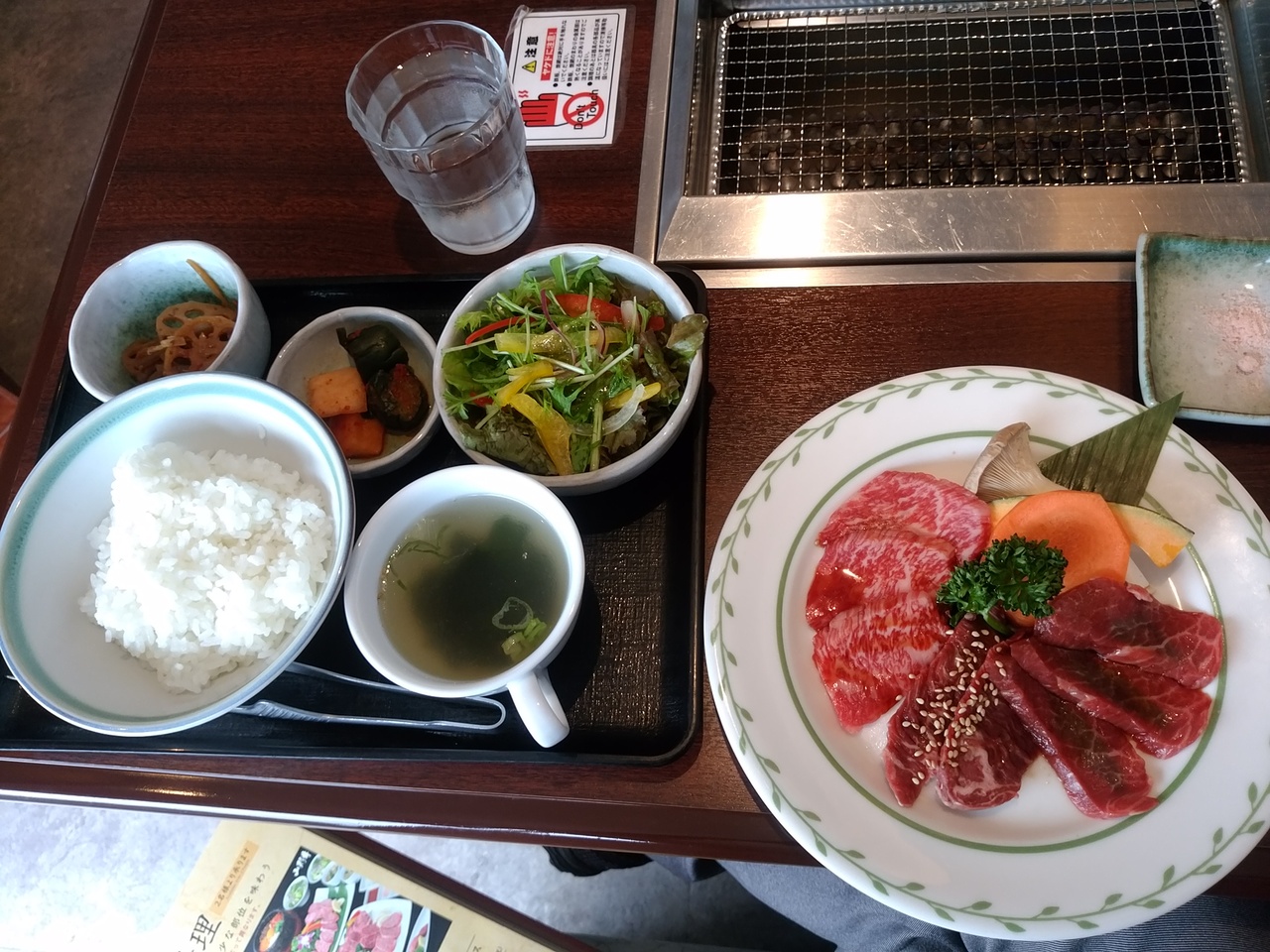 誕生日祝に高級感と雰囲気の良い店を探して行きました。私が現役時代の7年前にはありませんでした。そごう広島10階から紙屋町界隈が一望出来る席を予約ていたので、景色も良かったです。私はトリプル焼肉ランチ(山形牛のカルビ、ロース、ハラミ)、妻ハーフ焼肉&食事が選べるランチ(ビビンバ、クッパ、ユッケジャンクッパ、冷麺から選択)を注文。追加で山形牛炙りにぎり(3貫セットの味比べ)をたべましたが、炙りにぎりは絶品でした。帰りに10月に予約すると、山形牛一頭コース通常一人1万円が半額になると言うのでキープしました。