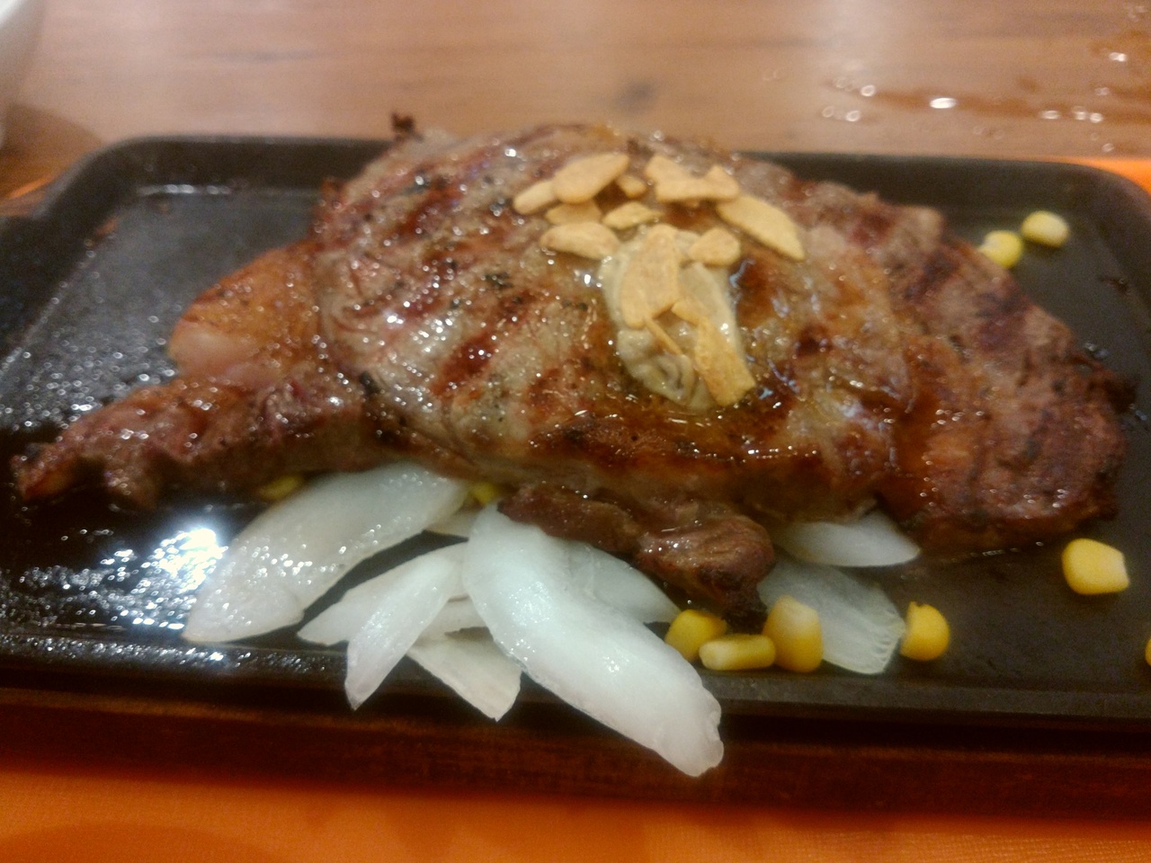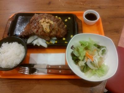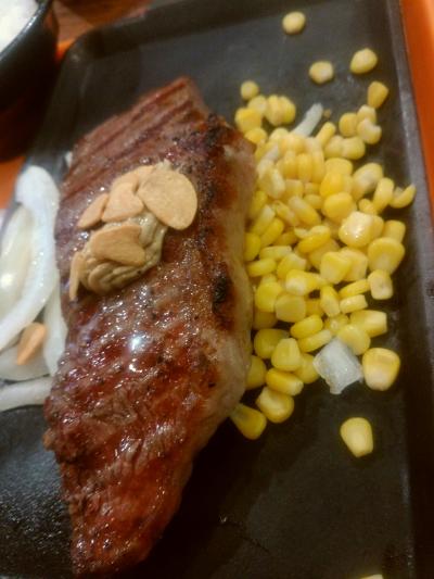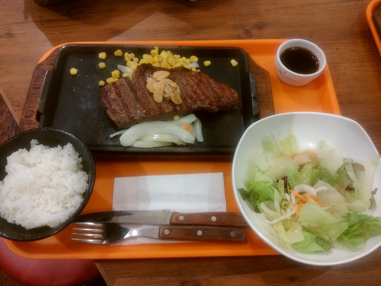ランチを目的に昼前に出発するも大渋滞で、高速で走行し到着寸前に進路変更で警察に捕まり1時50分に到着しましたが行列が出来ていました。早速リブロースステーキ300gと国産サーロイン200g及びスモールセットを注文。リブステーキは柔らかく食べやすかったですが、国産サーロインは固くて本当に国産か疑いたくなる程で、とても美味しいとは言えなかった。評判が良いのやっと行けたのですが、5千円以上も出して行く価値があるかは、甚だ疑問でした。