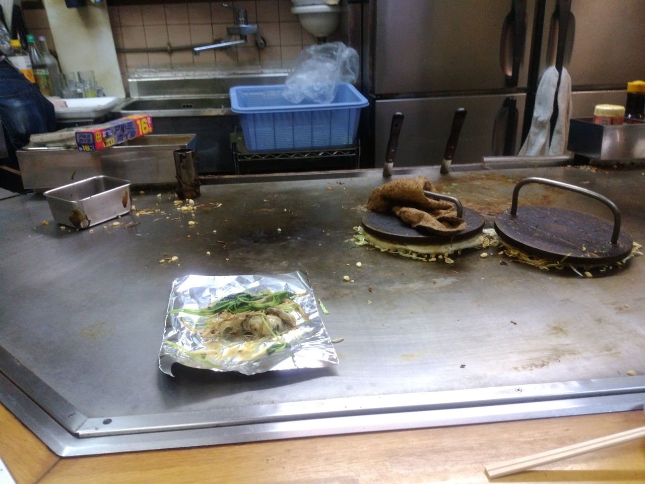 NYから一時帰国した息子夫婦を迎えに広島駅に行くと、学生時代に通っていた大福のお好み焼が食べたいと言うので一緒にいきました。私達が行く綺麗な店舗ではなく、昔風の店でした。お好み焼きと牡蠣焼とビールを注文。最近のお好み焼きと違いあっさりしていて美味しかったです。