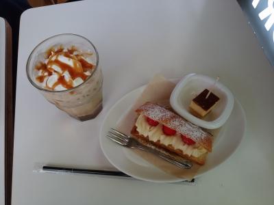 今日はパルテイ・フジ坂の一竜にラーメンを食べに行った後、隣にあるスティックにお茶をしに行きました。パルテイ坂で食事するのは一竜か、前にある焼肉店ですが、食後は大体この店で休憩します。注文は苺のケーキとキャラメルラテを食べました。ケーキの種類
