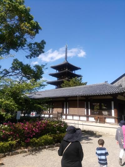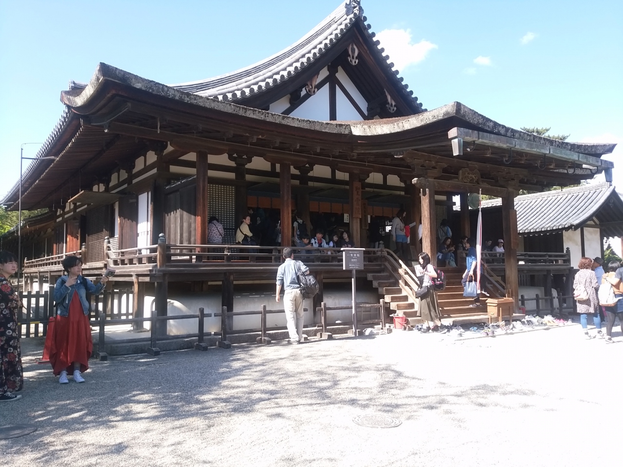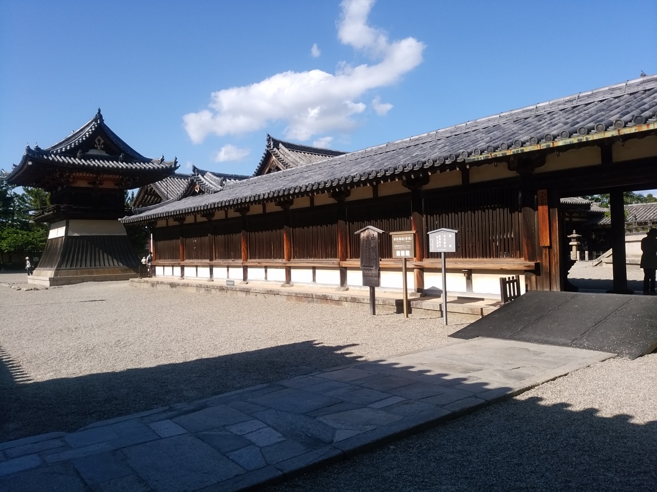 東大寺、興福寺、春日大社と観光し最後によりました。法隆寺の仏塔で仏舎利(釈迦の遺骨)を祀る為に造られたものです。国宝に無指定されている木像の五重の塔は全国に11あり、午前中に観光した興福寺の五重の塔より約20m低いそうですが、11ある国宝の内群をぬいて長い歴史を持っているそうです。しかし、興福寺は無量ですが法隆寺は有料で、過去数回来ていますがその度に拝観料を払うのは?です。昔と殆ど変っていないと感じました。記憶にあまり残っていませんでしたが、来てみると記憶が蘇りました。