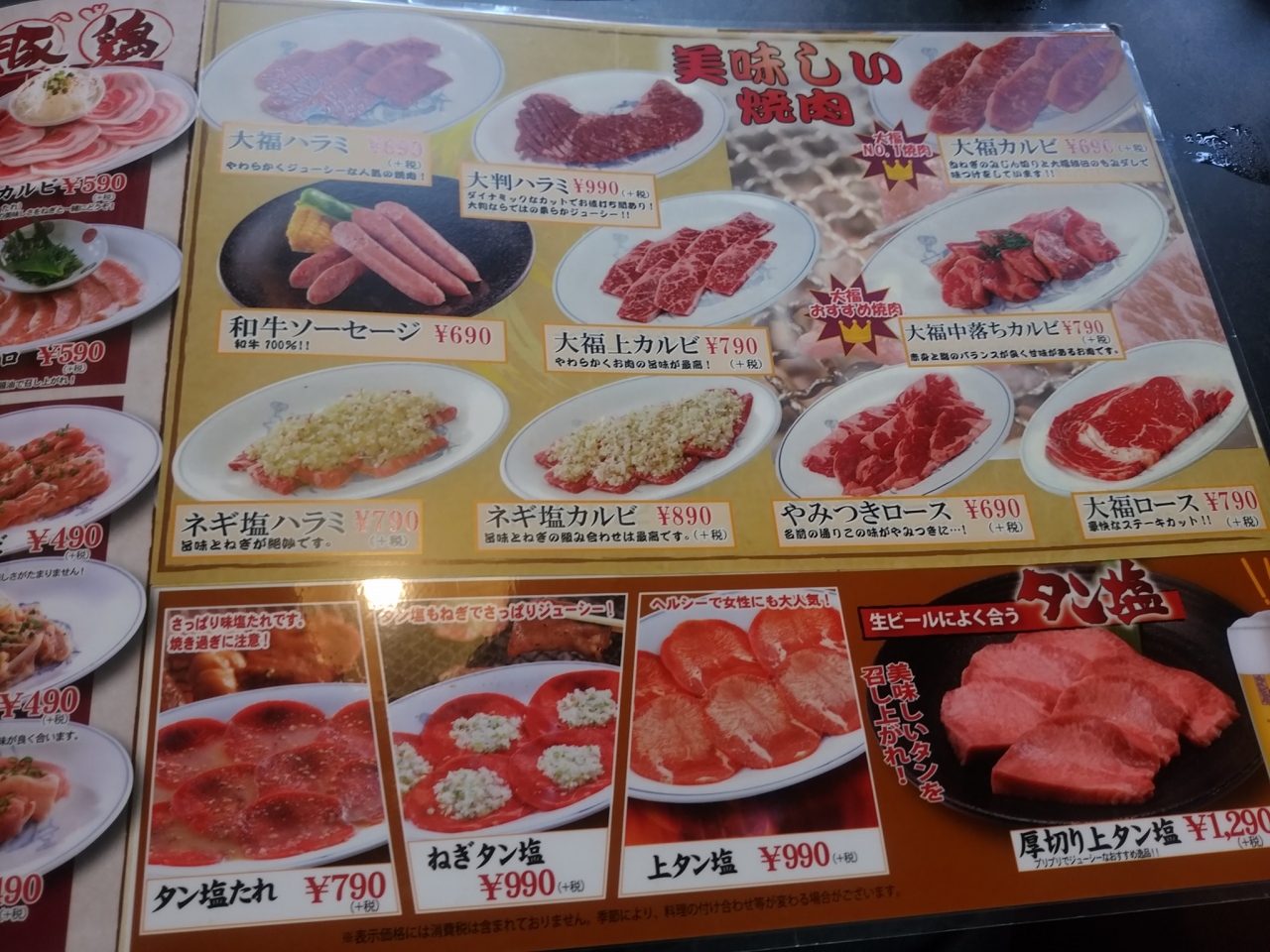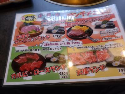 現役時代に広島・呉の肉系レストランには殆どいった程の肉食でしたが、退職後は肉食以外を食べていました。先日テレビで年配のお年寄りが元気なのは肉系を食べているからだという放送があり肉系に変更しました。最初は坂にあるじゃんじゃかに行き、今日はカルビ大福へ。注文はカルビ・ロースランチと単品の大福ハラミ、食後にチョコレートパフェとバニラ・抹茶アイスを食べましたが大変美味しかったです。ランチは平日は営業していなくて、土日祝日しかないそうです。使用している肉はメニューには佐賀牛が多い様で、ランチでカルビとロースのコラボは中々無いと思います。お得感あり、美味しさもあり数年食べに行っていませんでしたが良かったです。