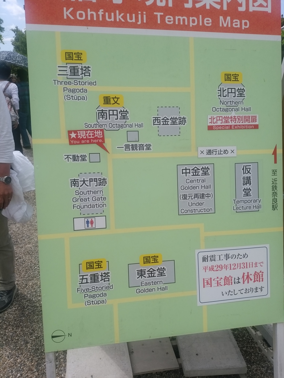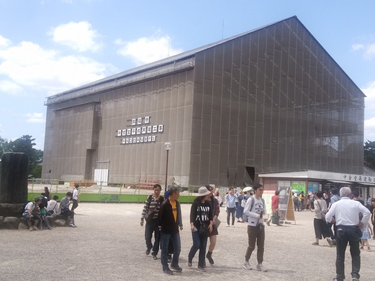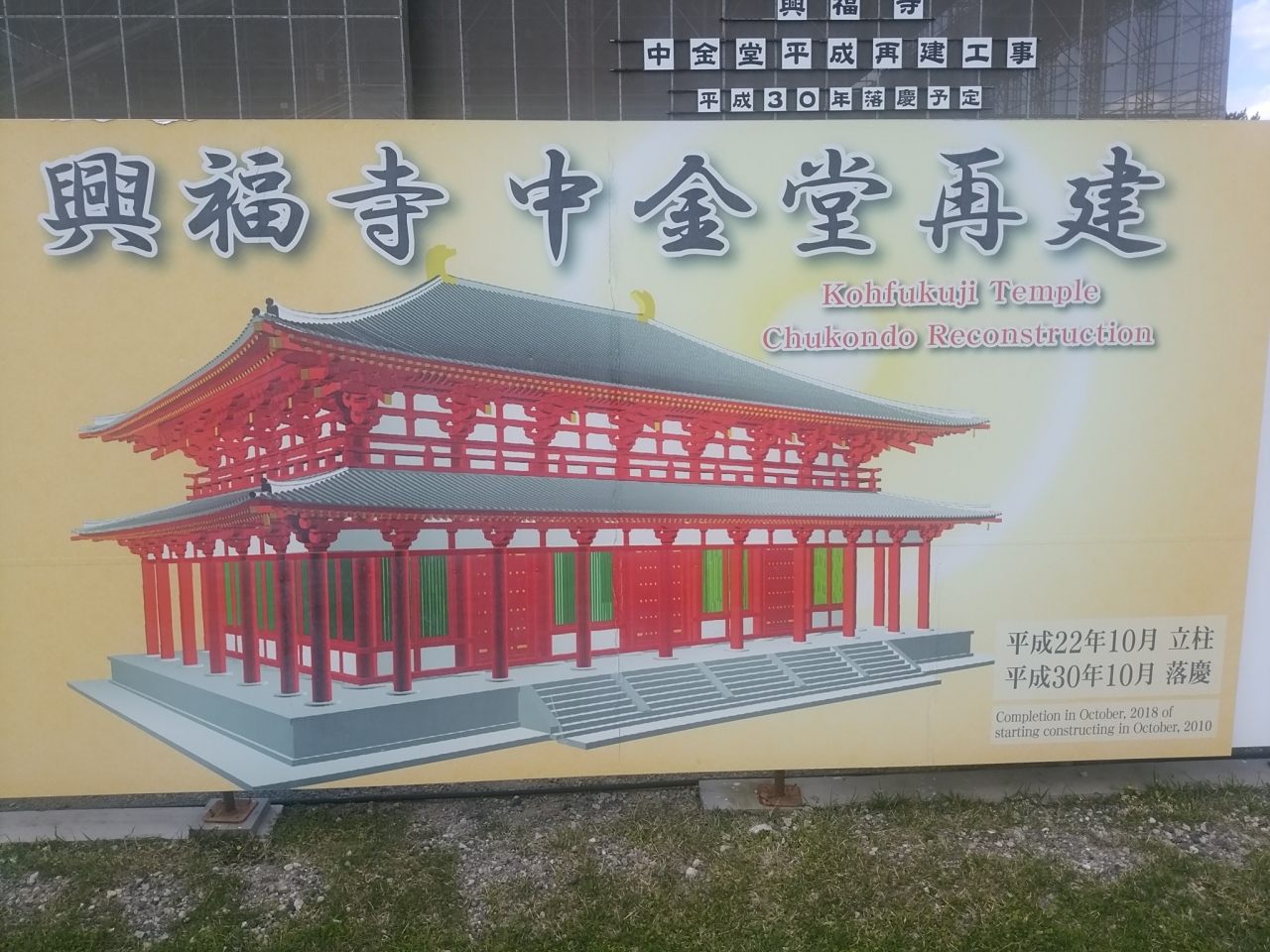 当初の調査では興福寺の駐車場が9時に開くのでそれまでに行けば駐車できるとブログで観たのですが満車でした。そこで285台駐車できる県庁前にある登大路駐車場北に行きましたが、道路の段階で侵入できませんでした。運よく近くで呼び込み駐車場に駐車できました。今日は大型連休という事もあり芋の子を洗うように人が多く、全て徒歩で観光するはめになってしまいました。中金堂は再建途中で平成30年の落慶を目指しているそうで、建物の前は基壇が出来た段階で、再建後の看板と再建費用の勧進のお願いだけが目立ちました。来年の再建後に再訪したいと思います。今度は平日に。