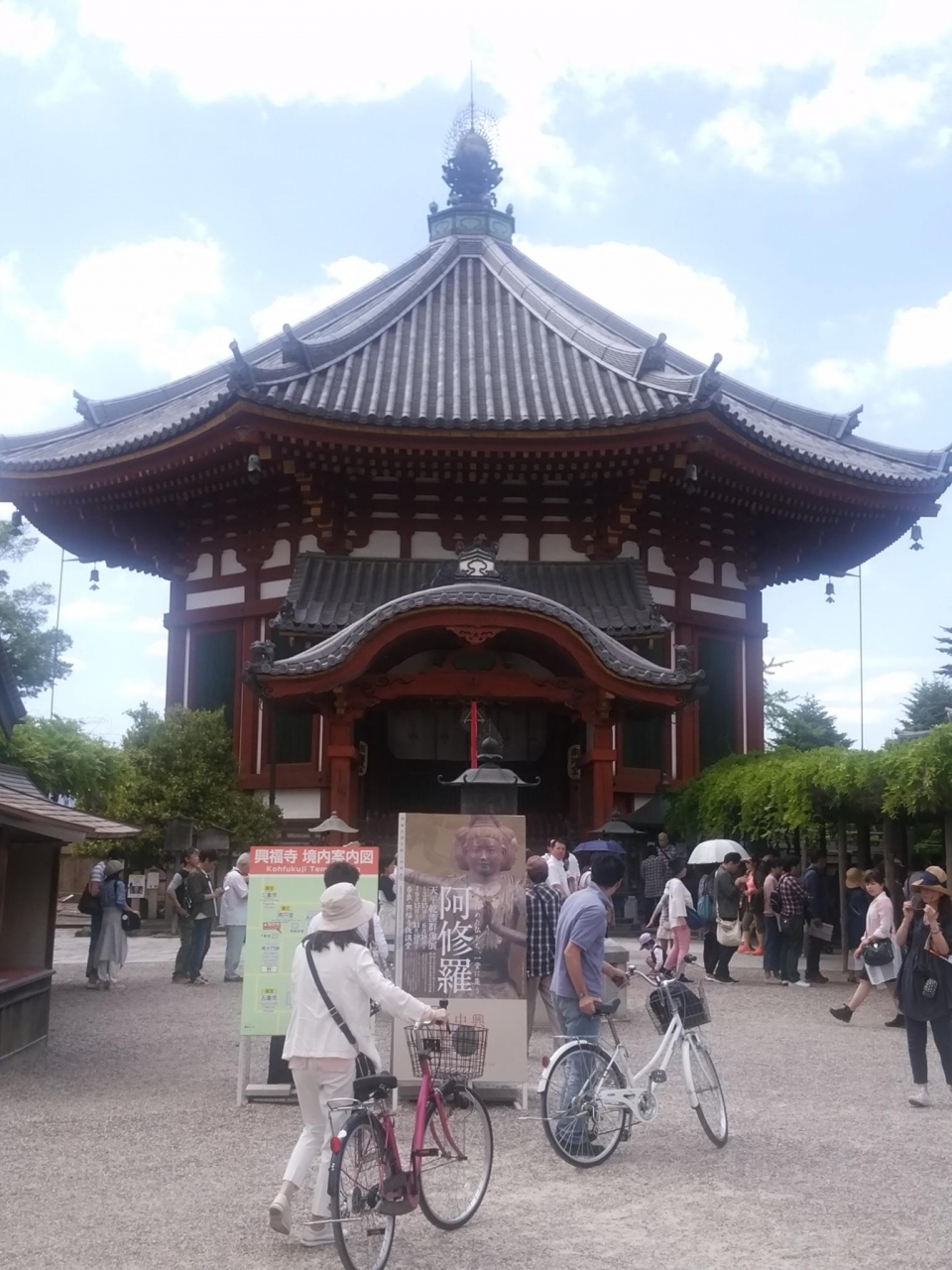東大寺観光の後に興福寺に行きましたが、代表的なものは五重の燈で東大寺からも見ることができました。南円堂と北円堂も八角堂でてきており綺麗でした。北円堂は特別公開期間中で弥勒如来坐像他の仏像が見れました。東金堂は有名で人が多く昨日は1時間30分以上の待ち時間だったそうですが、私達が訪れた時はそこまてでは無く国宝の仏像が見応えありました。国宝館は耐震工事中で休館でしたが、安置されている仏像たちを普段非公開の仮講堂で公開されていて、阿修羅像はそれぞれ違った顔を持つ戦いの神で見応えがありました。その他天平乾漆群像展もあり観るべき価値があります。