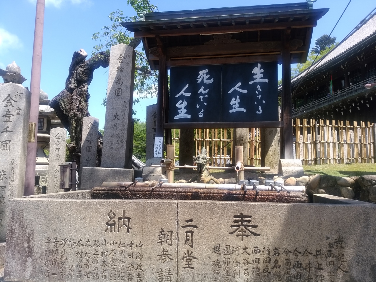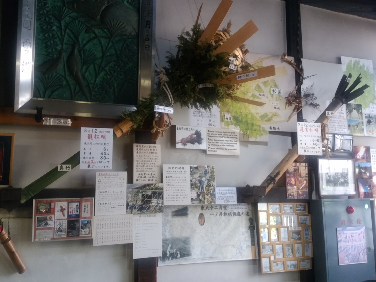 十数年前に来た時は雨で駐車場に待機していましたが、今回は時間をかけて見学したので東大寺だけで2時間以上かかりました。今度で3・4度目ですが現役時代は観光場所に沢山行く事が目的で記憶が曖昧になっている場所もあります。登大路駐車場の近くに車を預けて一番近くの戒壇堂、大仏池、指図堂、大仏殿を観た後に大仏殿横にある風情ある坂を登ると二月堂です。入口には立派な手水舎があり右奥にある階段を登って本堂へ、本尊は大観音と小観音と呼ばれる2体の十一面観音像で、何人も見る事を許されない絶対秘仏だそうです。本堂を参拝した帰り道に休憩所がありお茶を飲む事ができますが、セルフサービスです(飲んだ茶碗は洗って元の場所に返却します)。この休憩所の壁には有名なお水取りの籠松明が飾ってありました。休憩所から来た道を少し帰ると長い下り階段を降りるのですが、すべてが良かったです。