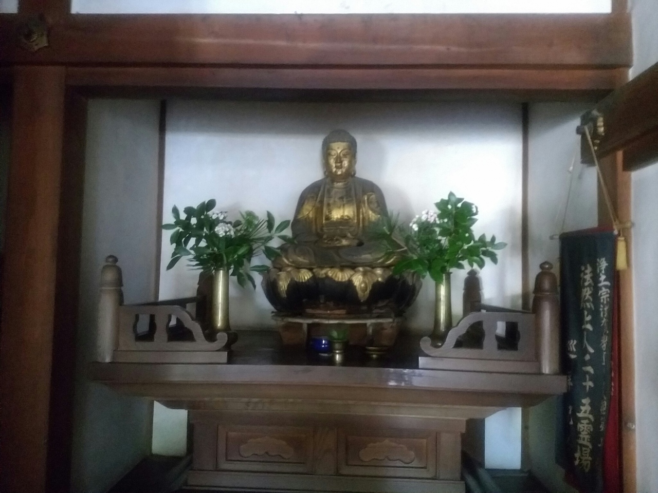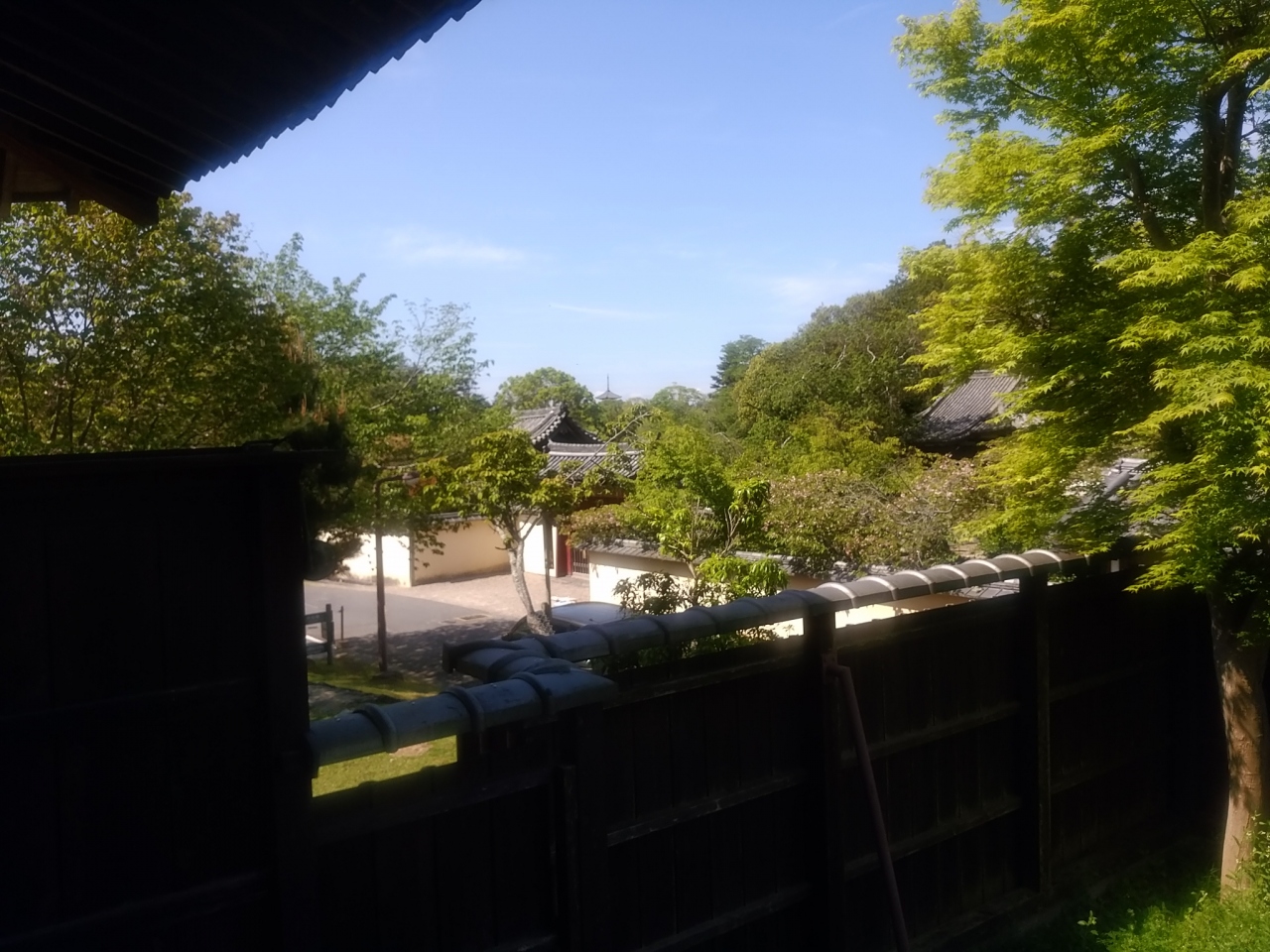 今日は早朝5時発9時東大寺着で2番目に観たのが指図堂です。9時過ぎのためか観光客は誰一人おらず、掃除をしているおばさんが堂内の電気や祭壇に蝋燭を点灯してくれ簡単な説明をしてくれました。入口前の階段右に石碑が建っており、円光大師二十五霊場と書かれてありました。堂内には金ピカの厨子が置かれており、この中に法然上人が描かれた掛け軸がかかって泰安されているそうです。堂内毛向かって左に阿弥陀三尊像、右には釈迦如来像が安置されており、小さなお堂にしては見応えがあり、興福寺の五重の燈も遠くに見えて良かったです。