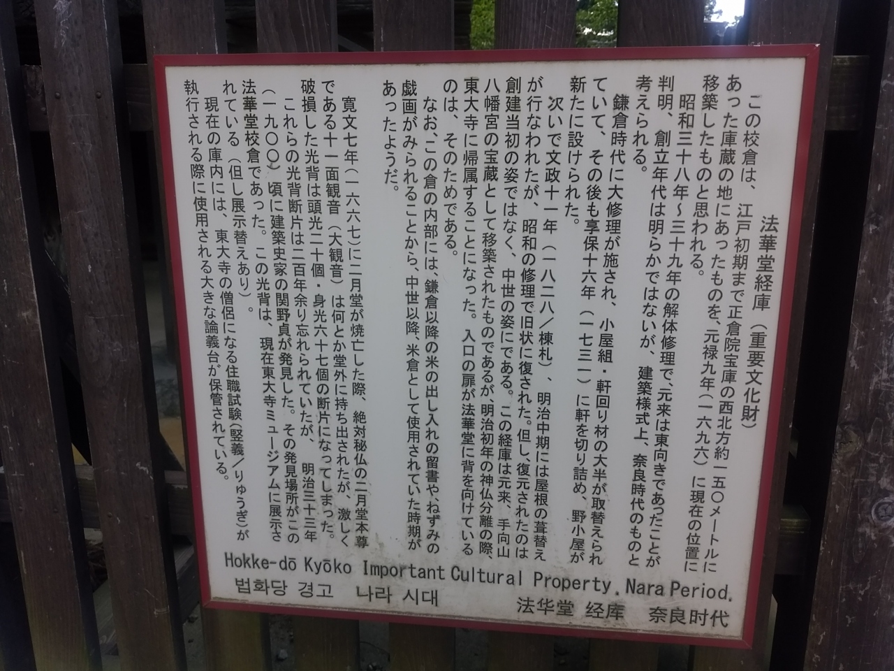 この場所は事前にネットの東大寺境内案内図に載っていなかったので探すのに苦労しました。境内にある図面には載っていたのですが場所が解りにくかったです。二月堂手水舎と本堂からの下り階段を下りた中間地点にあり、え、これがと思う程目立たない建物でした。二月堂はお水取りの籠松明で有名ですが、そのお水取りの行事が行われるお堂で、僧侶の中でも「しゅし」と呼ばれる役職者と汲み上げの補助をする堂童子、「しょうのくし」だけで本尊にある十一面観音菩薩にお供えする御香水を汲む儀式を行うそうです。