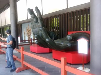 東大寺観光の最後の南大門に行く前に寄りました。東大寺を駐車場の関係で逆方向から殆ど観光して来ましたが、色々知識を付けた後だとミュージアムに別途保存されている国宝・重文も多くある事が解りました。仏像も良かったですがミュージアムに大仏の実物大両手が展示されていて、左手の形は与願印と呼ばれ手の平を上に向けて人々の「願いを叶える」事を表し、右手は施無畏印と呼ばれ手の平を前に出して「恐れなくてもよい」と相手を励ましているそうです。数十年前に来た時には無かったので、年を拾って来ると色々見方も違い、斬新な物も出来ていて良かったです。勿論拝観は有料。東大寺を全部見ると拝観料だけでバカに出来ない額になりました。