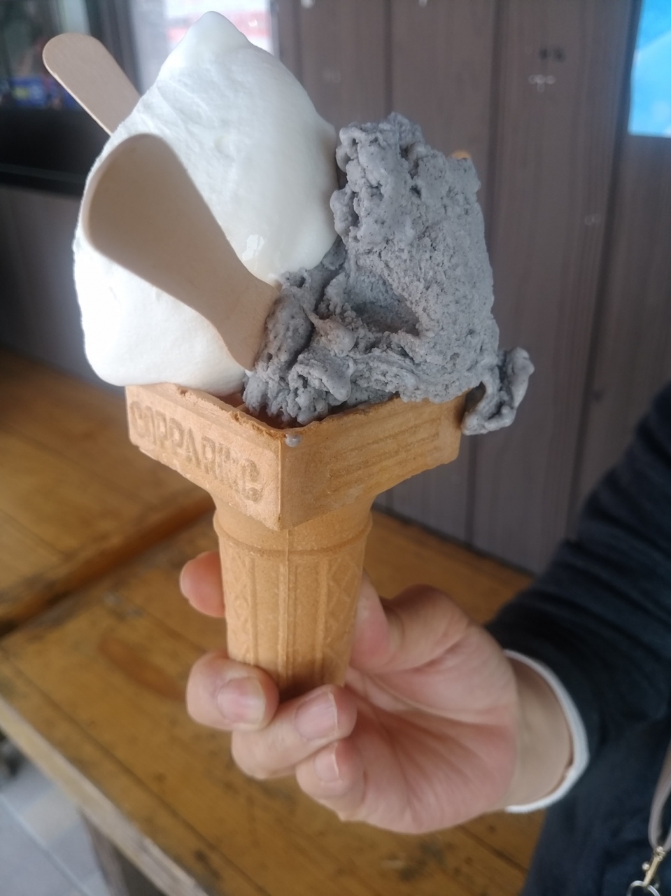 美星天文台を観光した後、美星産直プラザ内の星の郷に行く途中にアイス工房があり、店舗前で大勢の人がアイスを食べていたので、暑い日でもありゴマとミルクを食べました。外出する時はアイスとソフトは良く食べますが、まろやかで舌に溶けるようで、北海道で食べたアイスに匹敵する位美味しかったです。