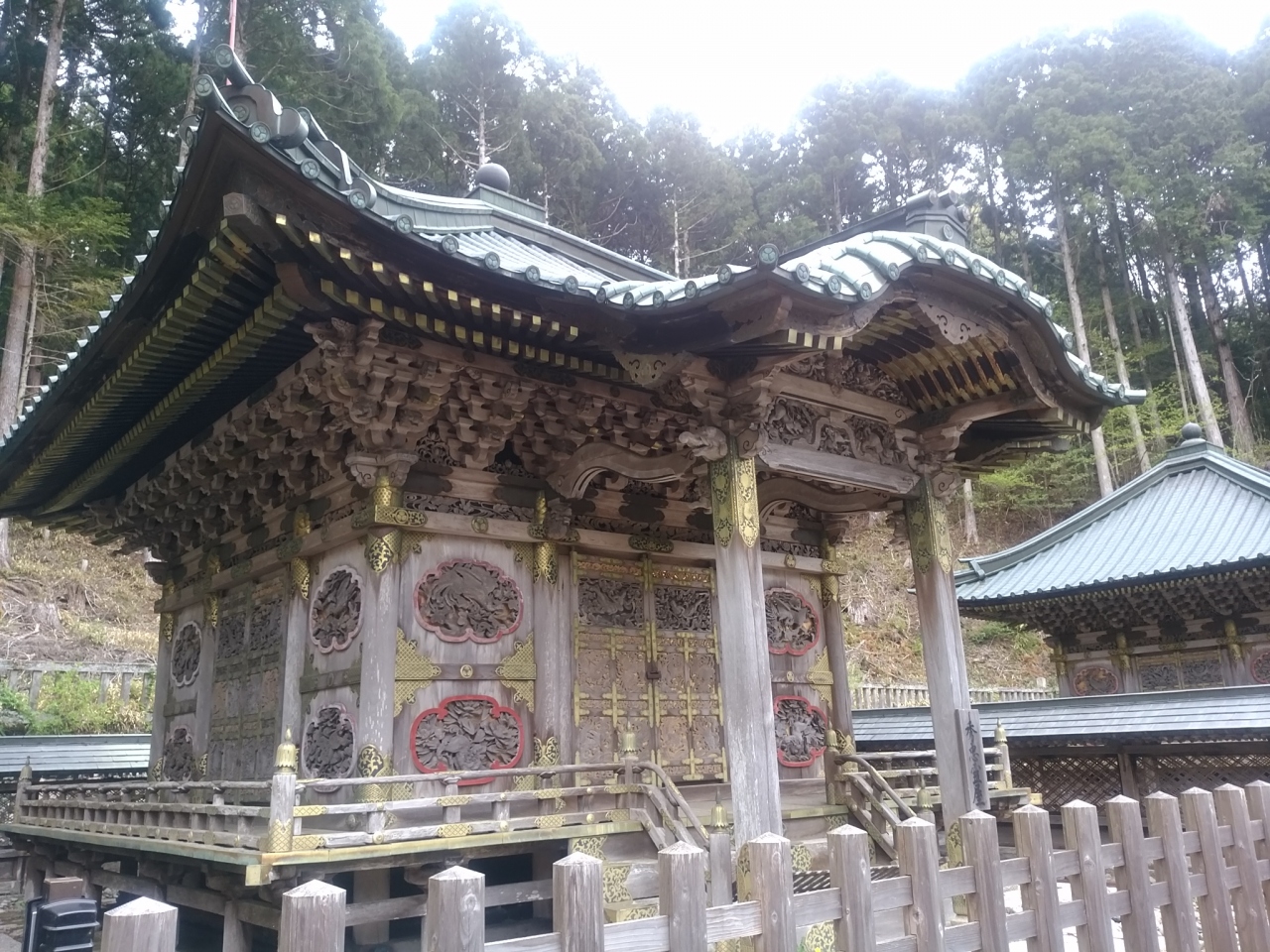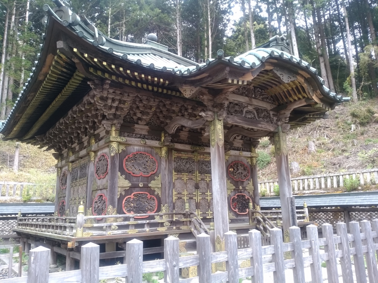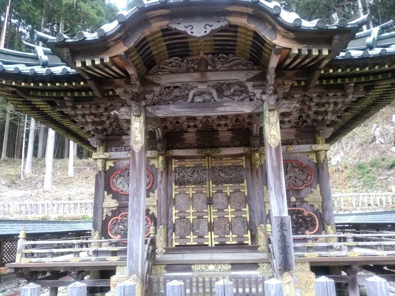 高野山を徒歩でひととおり観光し、奥の院からバスで千手院橋で下車して高野山大学に停めていた車で徳川家霊台と女人堂に行きました。霊台近くの町役場駐車場から歩いて行く予定でしたが、満車で仕方なく霊台側の空き地に放置して観光しました。45゜位の階段を登っていくと、三代家光が建立し向かって右が家康、左が秀忠が祀られていました。大きな建物ではありませんが細かな彩色の彫刻や金の飾り金具が使われ豪華な造りになっていました。単体での拝観料は200円ですが、共通券を買うと6ケ所拝観出来る内の1つです。